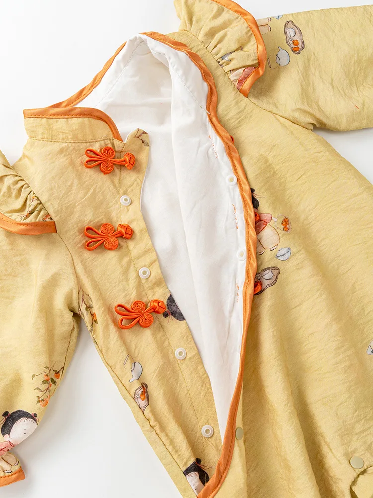 Mono de algodón con estampado de dibujos animados para niña, Pelele de estilo chino, ropa para niño pequeño, fotografía para recién nacido, BC468, primavera y otoño