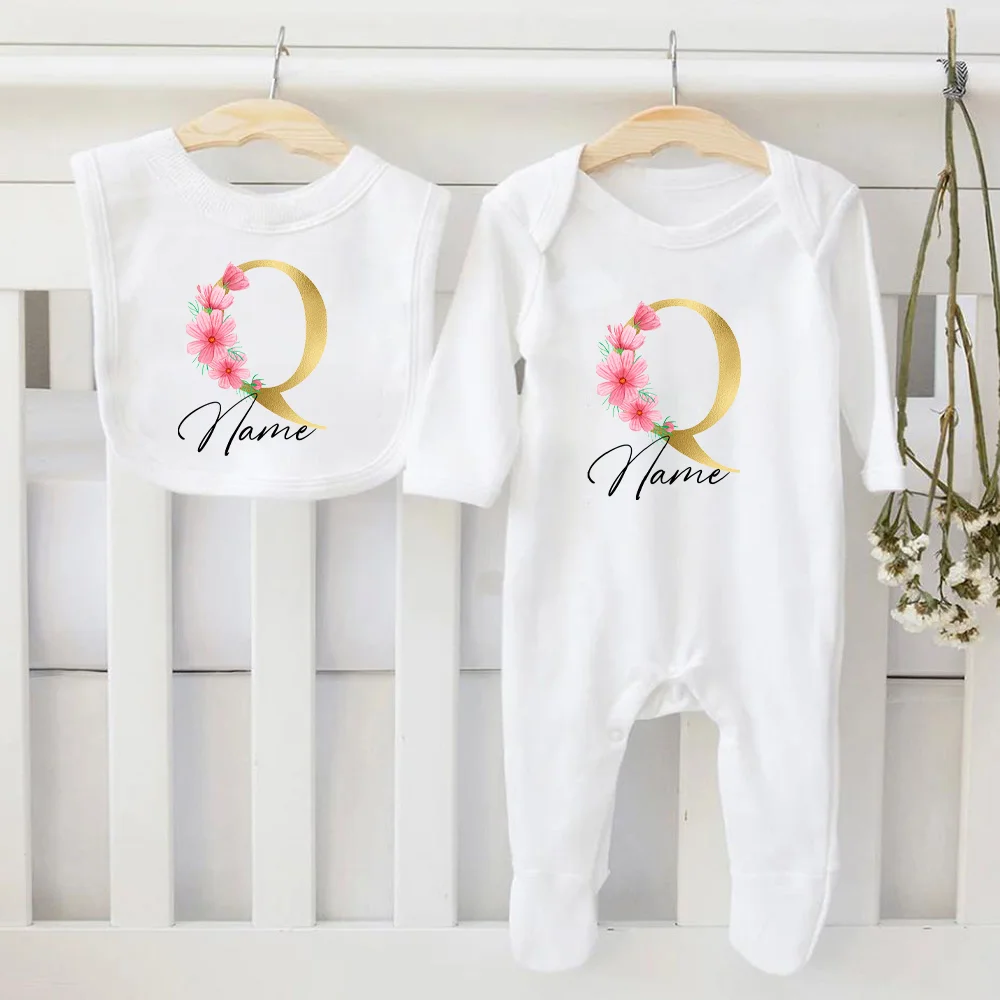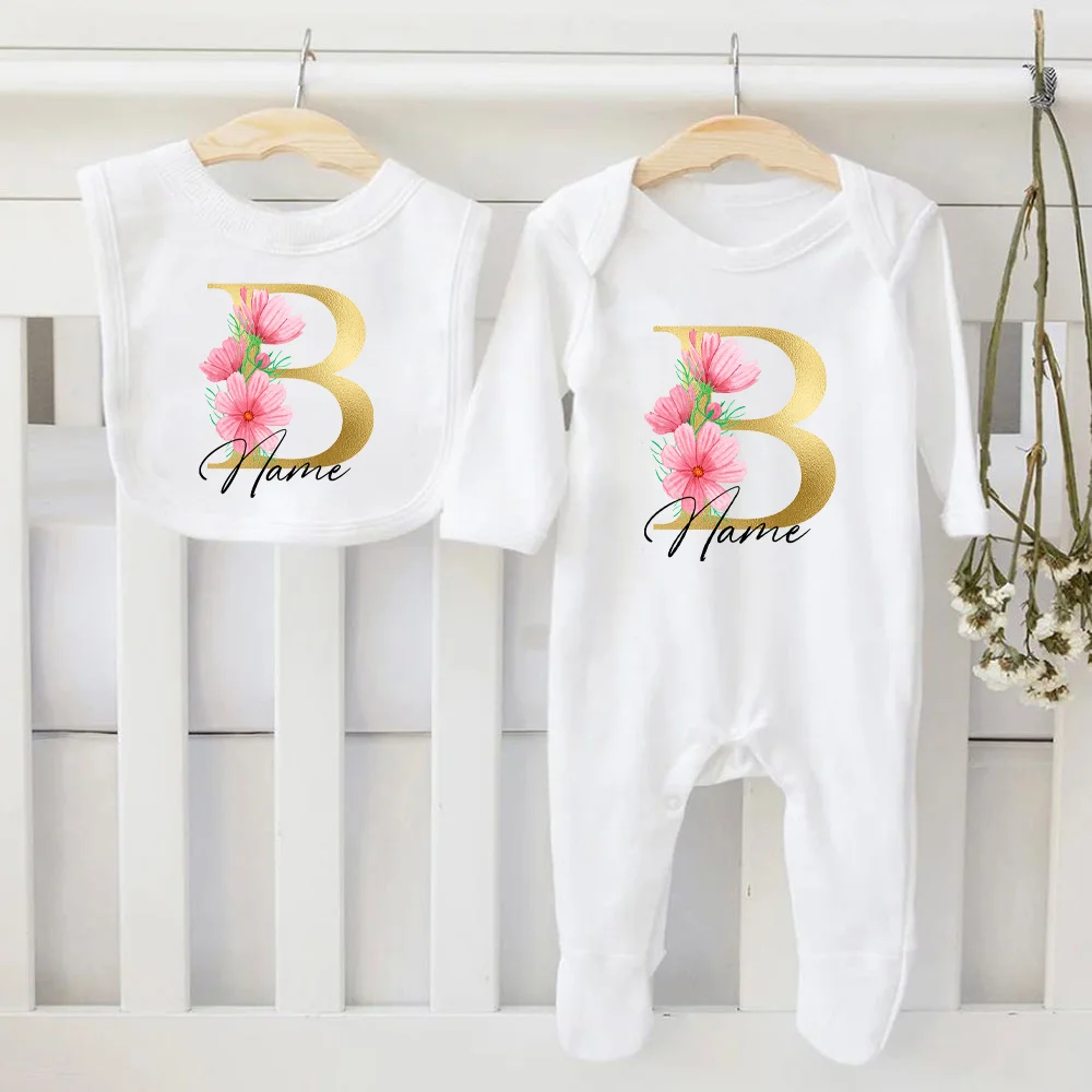 Mono y babero personalizado para bebé, conjunto de pelele y babero infantil de 2 piezas para recién nacido, traje de dormir para el Hospital, regalos para Baby Shower