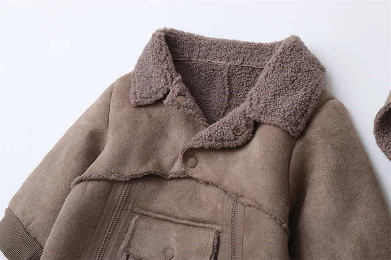 La capa exterior de terciopelo de piel de venado, la capa interior de lana de cordero, gruesa y resistente al viento.