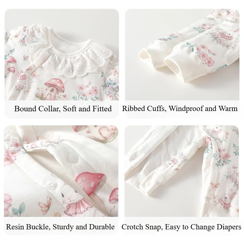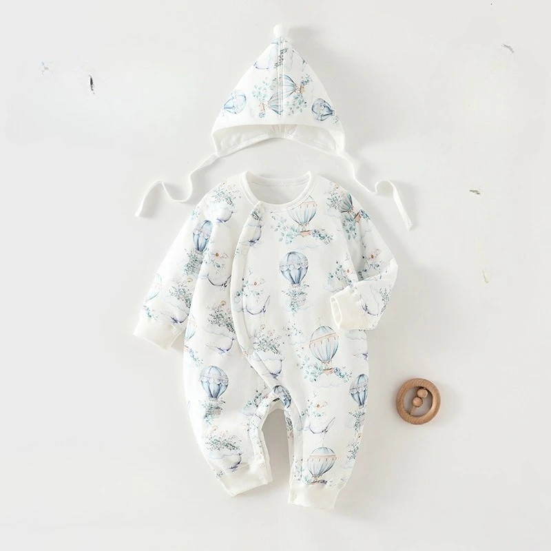 Mono cálido y grueso con sombrero para niña, pelele de manga larga con estampado bonito Unisex para invierno, pelele suave y cómodo para exteriores para niño