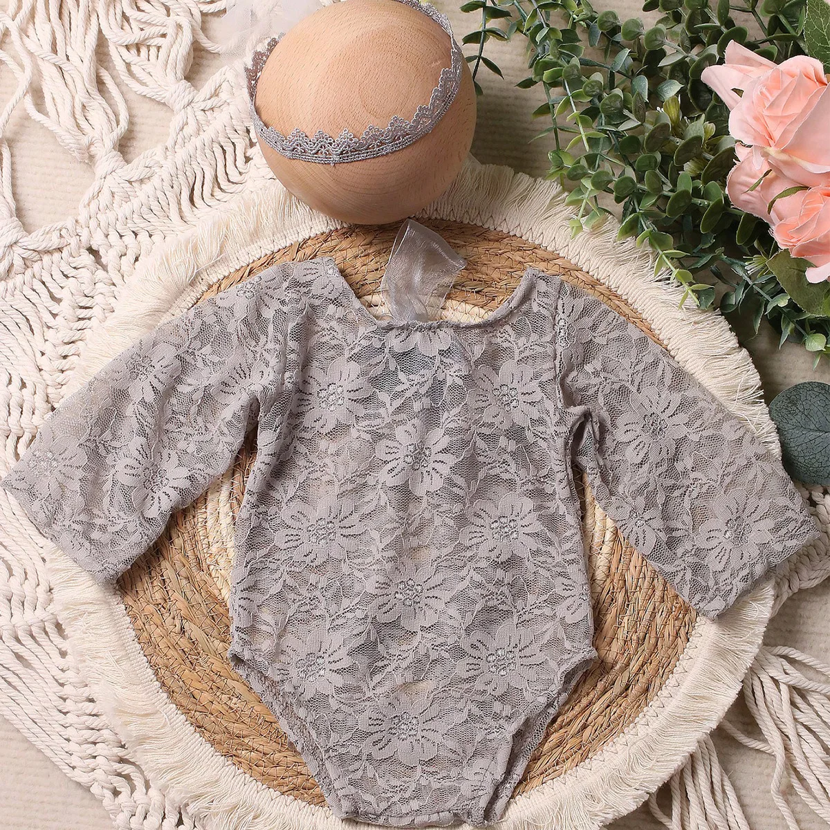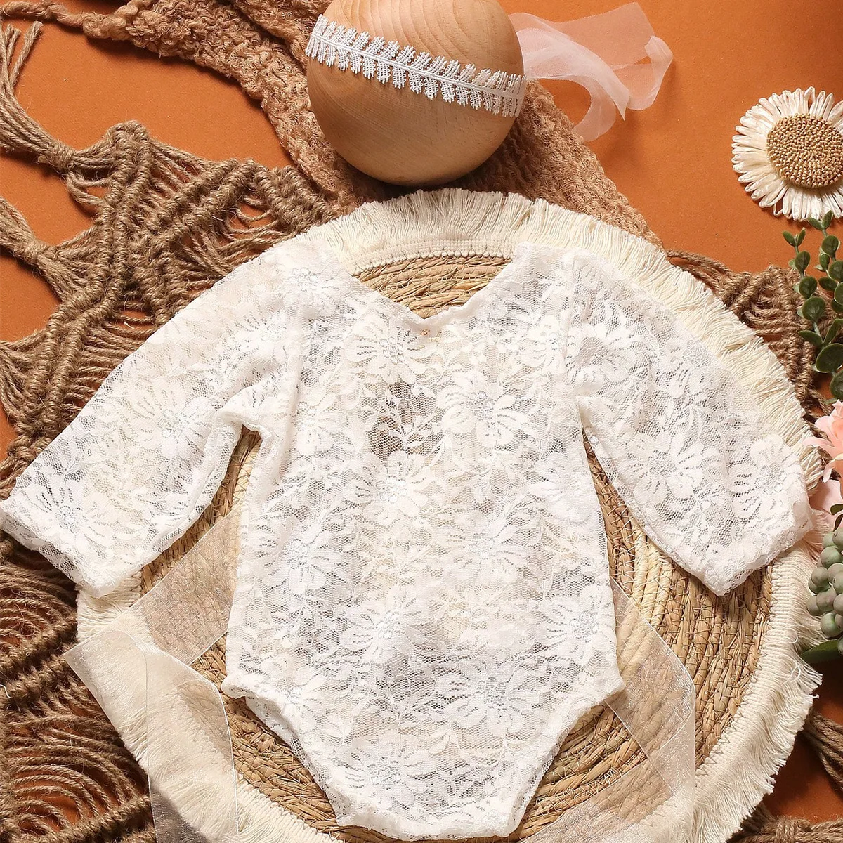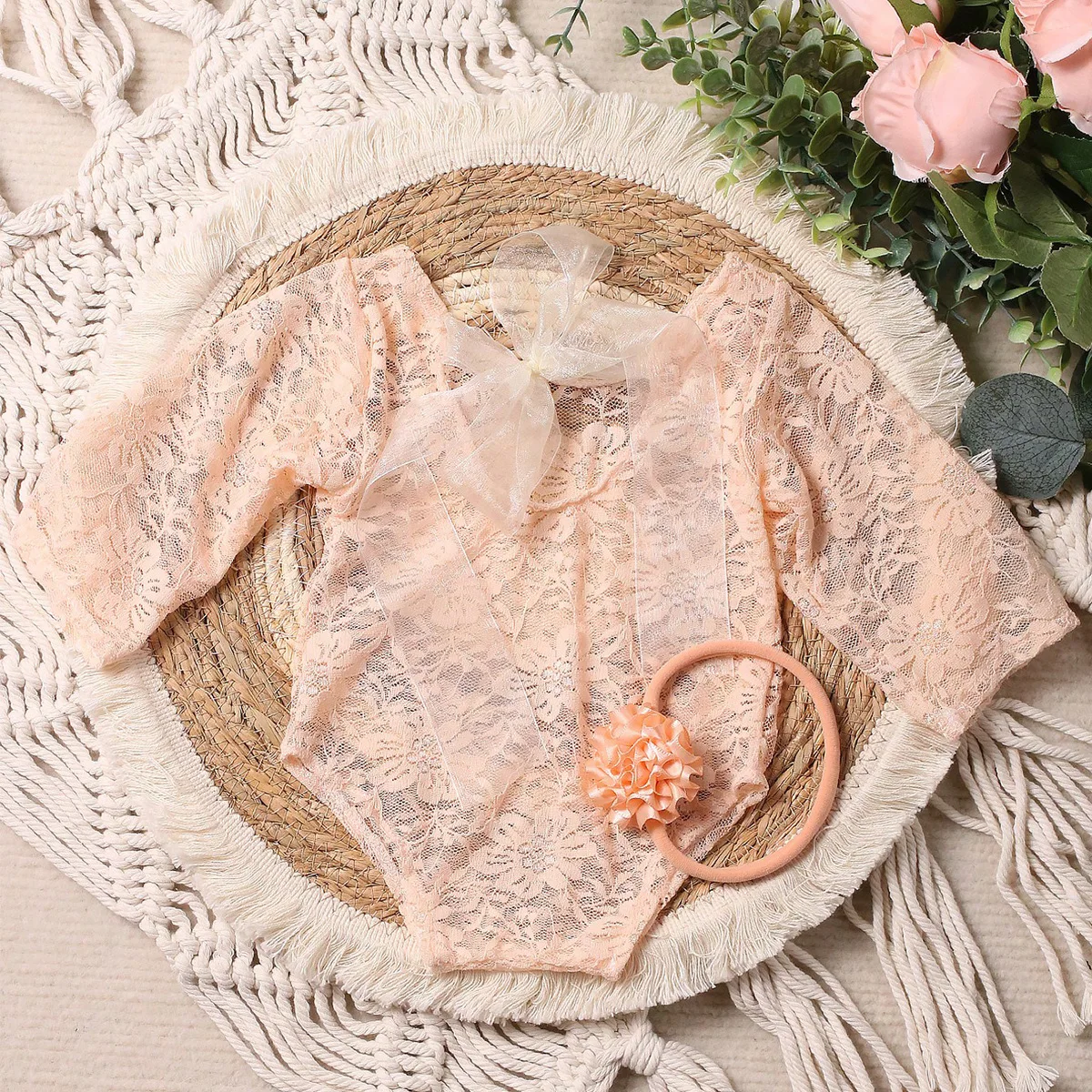 Comprar Mono conjunto de dos piezas de pelo de oreja de trigo para recién nacido con lazo de encaje para mujer, conjunto de ropa de fotografía para bebé, traje de fotografía para recién nacido