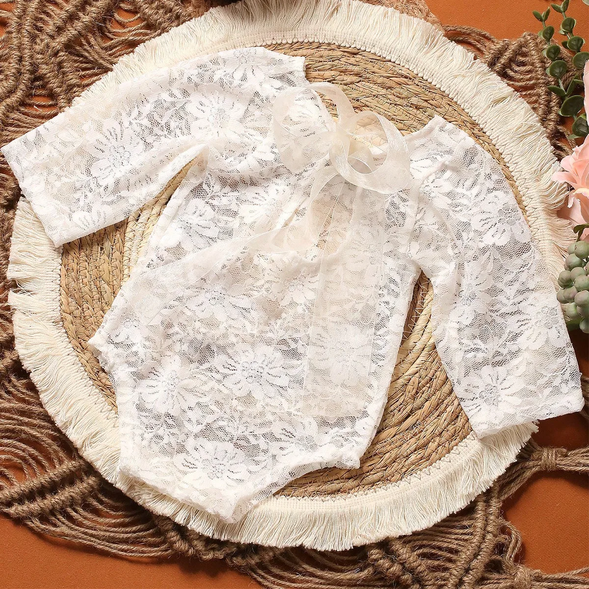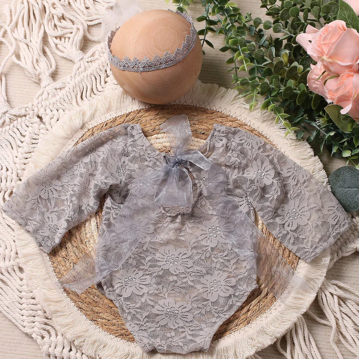 Mono conjunto de dos piezas de pelo de oreja de trigo para recién nacido con lazo de encaje para mujer, conjunto de ropa de fotografía para bebé, traje de fotografía para recién nacido