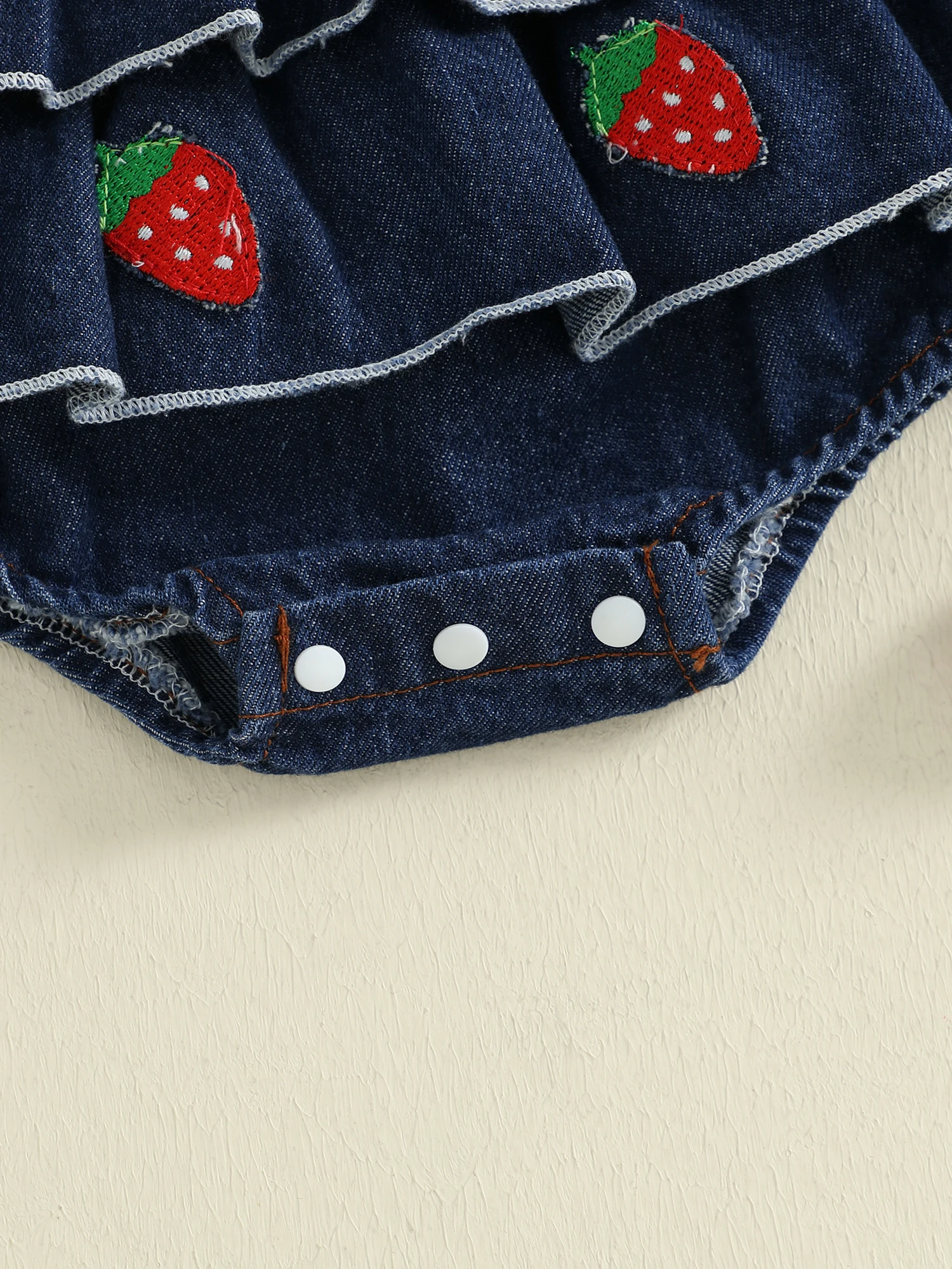 Especificación: Material: 95% algodón, 5% poliéster Tipo de patrón: fresa Género: Niña Tipo de artículo: mameluco