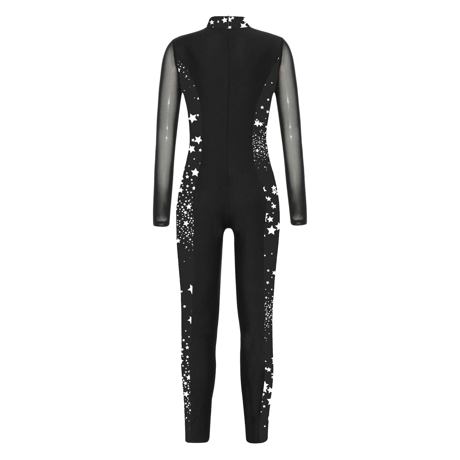 Cuello simulado, manga larga de malla transparente, el estampado vibrante hace que las niñas sean más enérgicas, el cierre de cremallera trasera es fácil de usar y quitar.