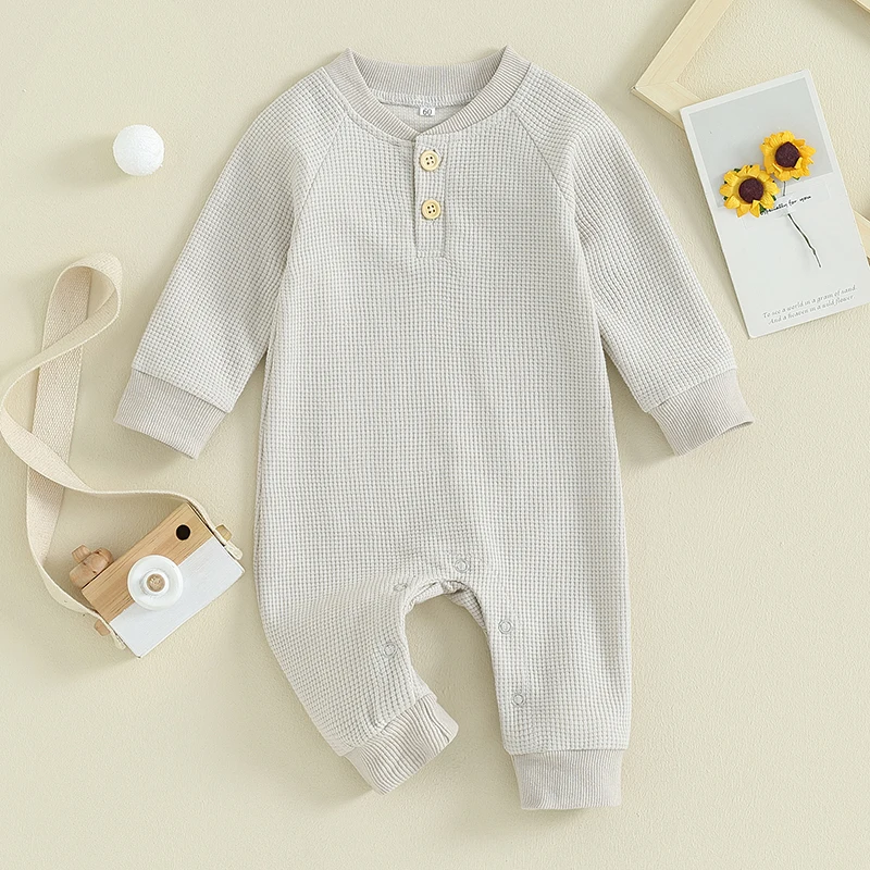 Comprar Mono de gofres de otoño para bebé, mameluco de longitud completa de manga larga de Color sólido, ropa para niños pequeños