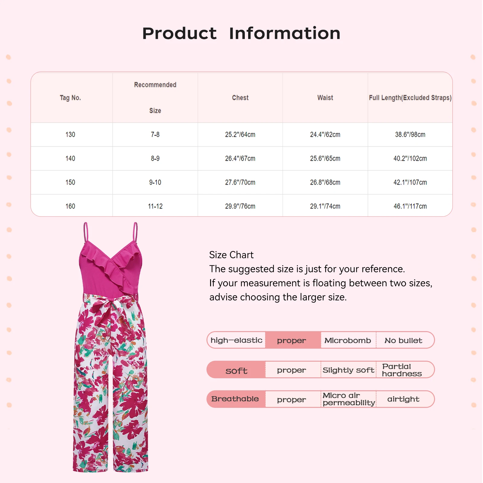 El mono con estampado floral y detalles de volantes hace que tu chica se vea linda y elegante. Tirantes finos ajustables y cintura elástica para un mejor ajuste.