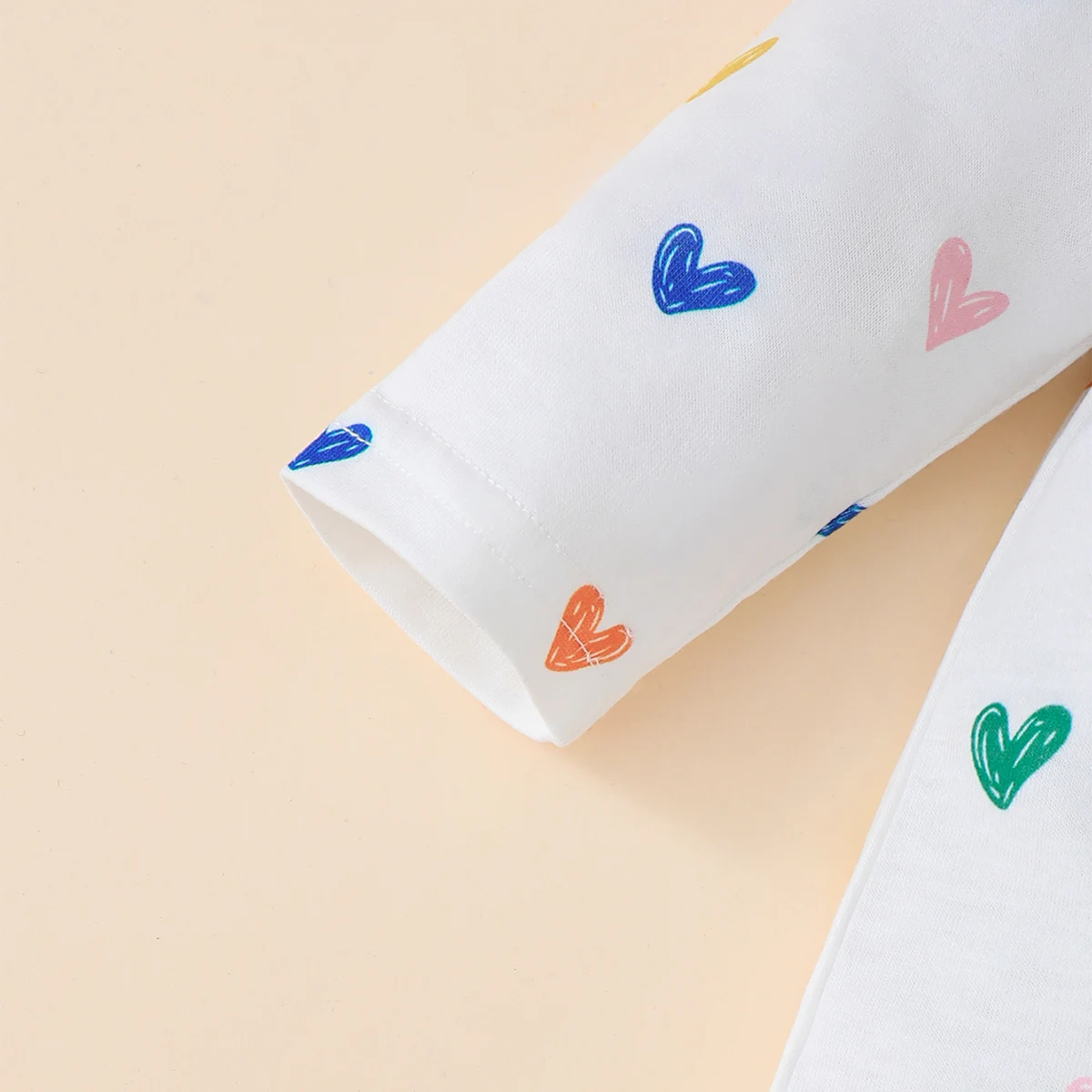 Mono de manga larga para niña recién nacida, pelele con estampado de corazón, sombrero y toalla para el hogar, ropa de otoño para niñas pequeñas de 1 a 18 meses