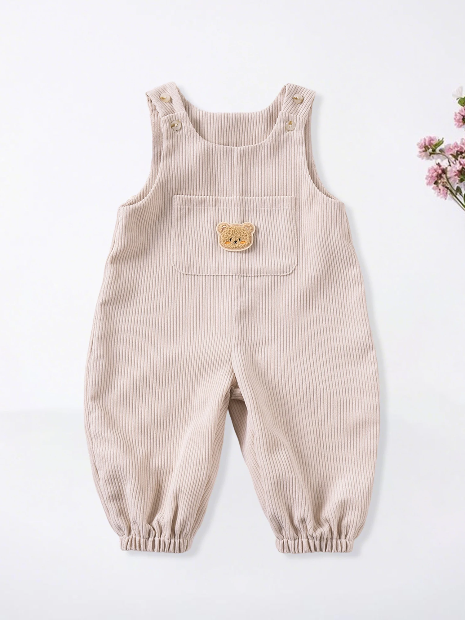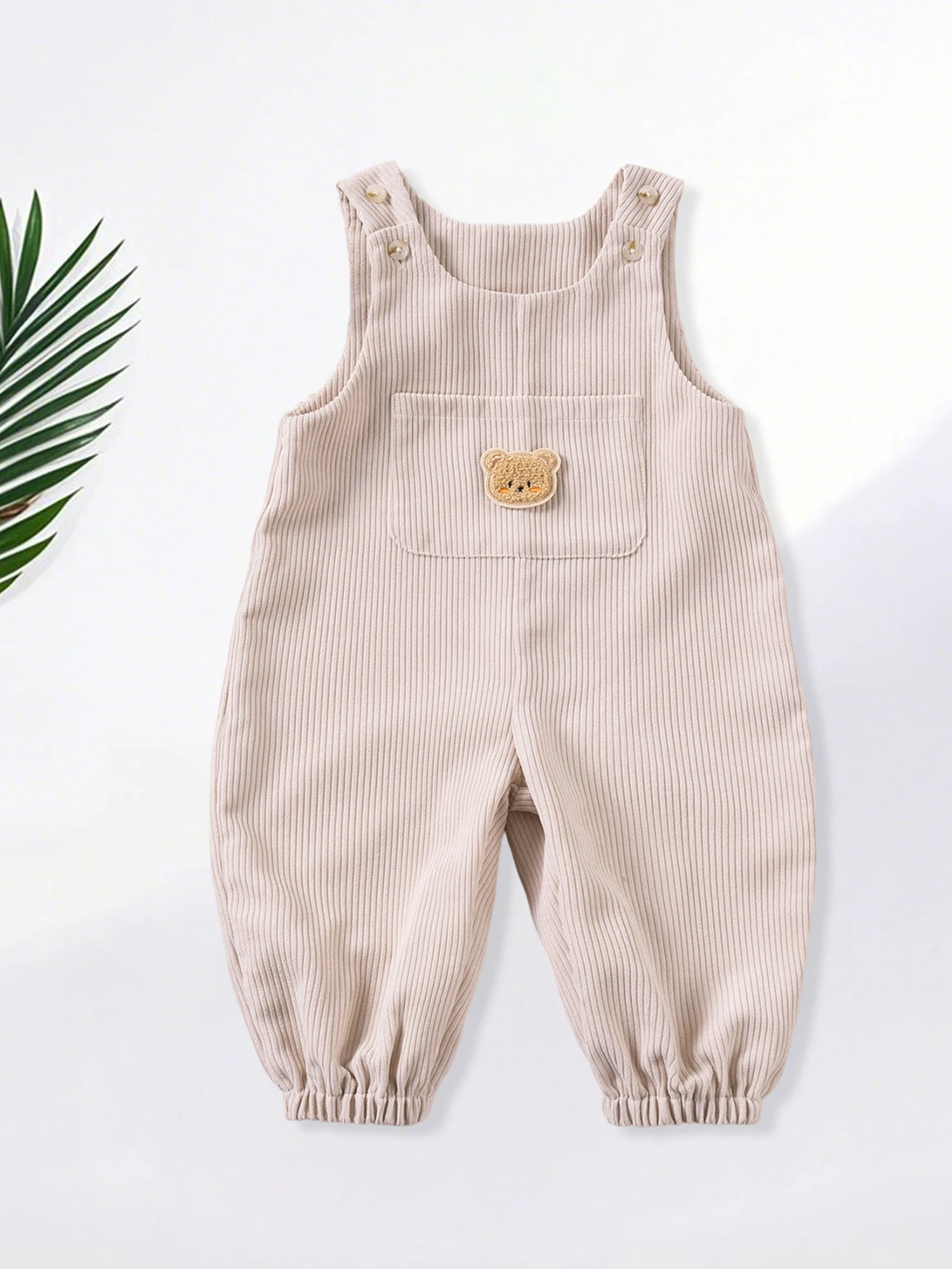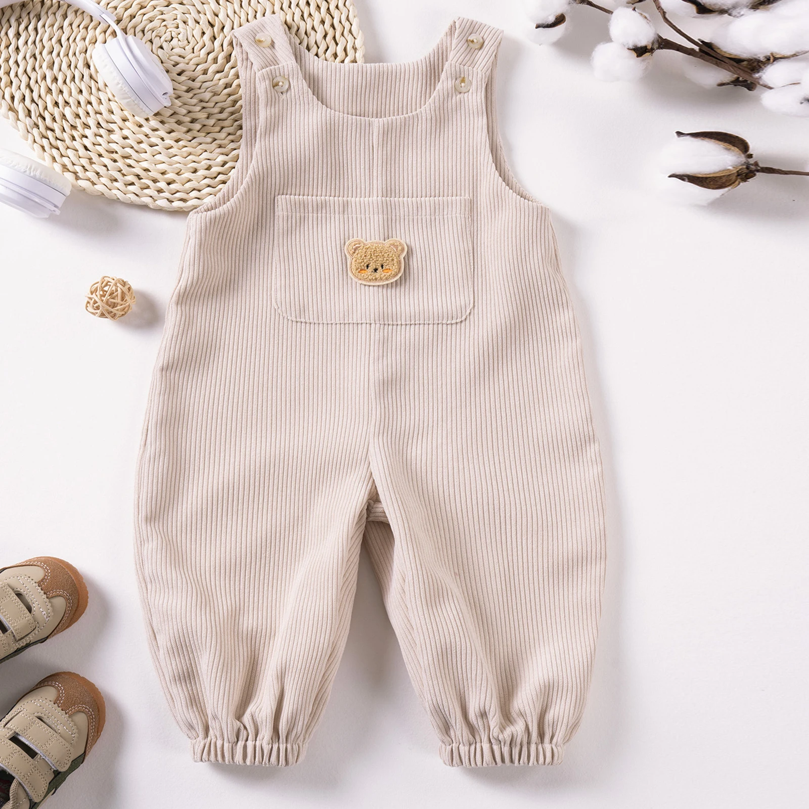 Comprar Mono de pana para bebé, niño y niña, mono sin mangas bordado con oso y bolsillo frontal, ropa bonita de otoño