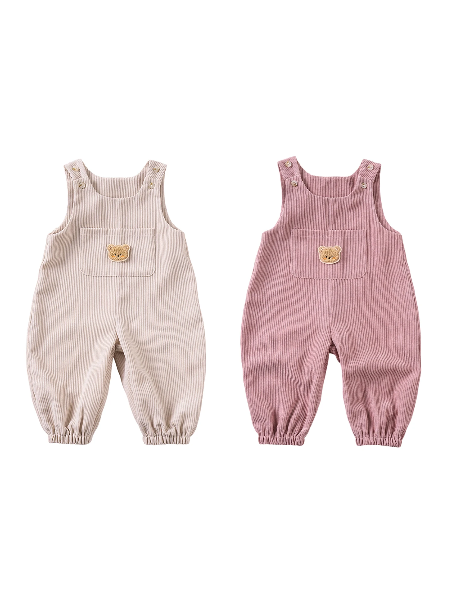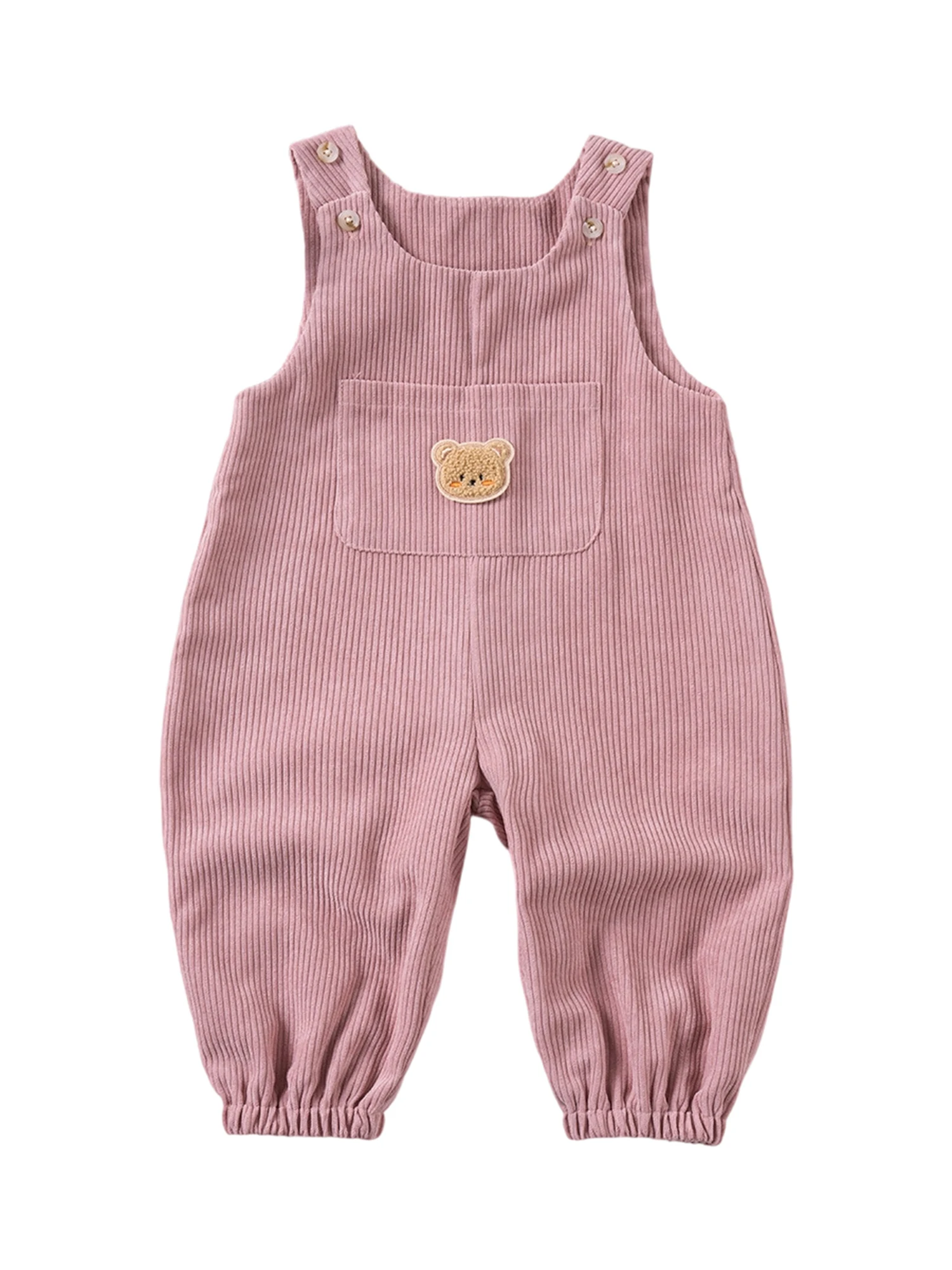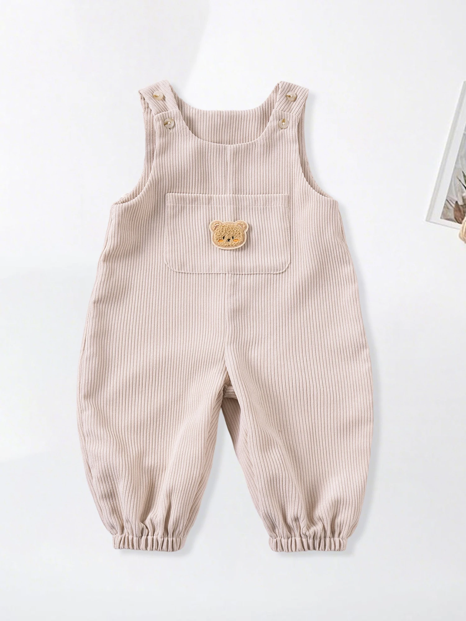 Comprar Mono de pana para bebé, niño y niña, mono sin mangas bordado con oso y bolsillo frontal, ropa bonita de otoño