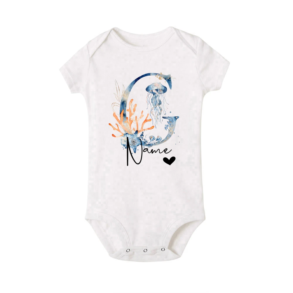 Mono personalizado para bebé, pelele con nombre personalizado para bebé, mono con estampado de animales del océano para recién nacido, ropa para niño pequeño, regalo para Baby Shower