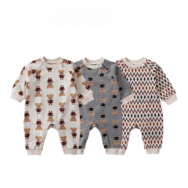 Comprar Mono de punto Jacquard para bebé, suéter de oso lindo para bebé, traje de escalada de otoño e invierno, nuevo