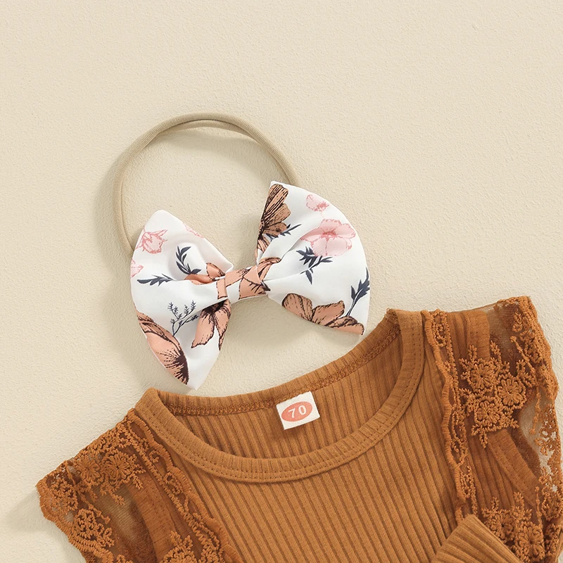 Comprar Mono de verano para niña pequeña, Pelele de retazos de encaje con estampado Floral, conjunto de vestido y Diadema, ropa bonita de moda