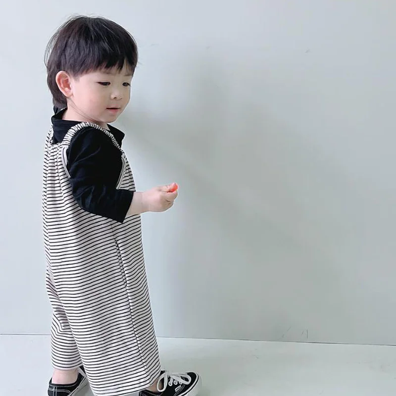 Comprar Monos estampados a rayas para niños y niñas, ropa de pierna ancha que combina con todo, pantalones exteriores de sabor exterior, color blanco y negro, primavera y otoño