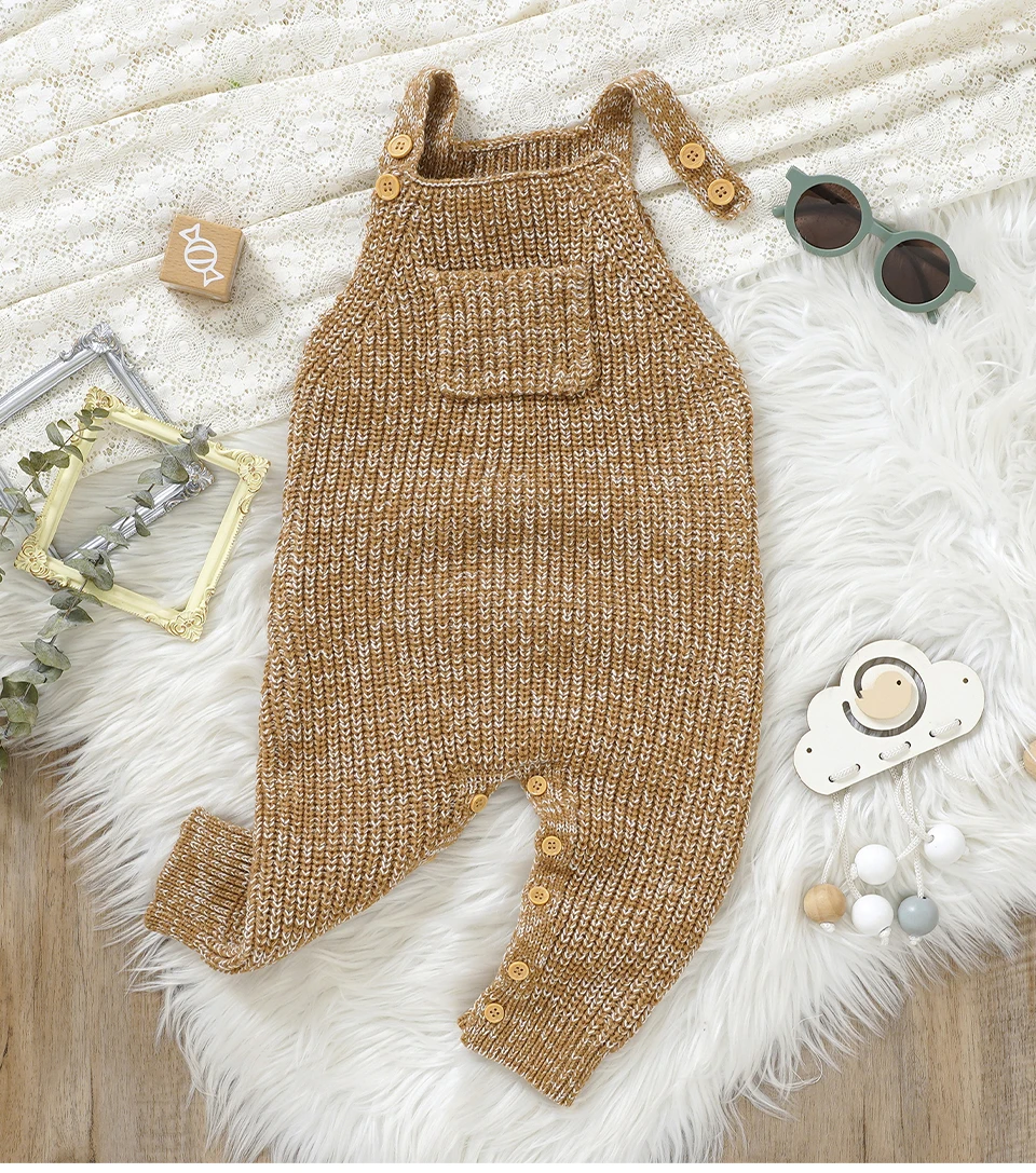 Monos sin mangas tejidos para niña, monos de una pieza de color marrón liso a la moda para recién nacido, monos para niño de 0 a 18m, ropa para niño pequeño