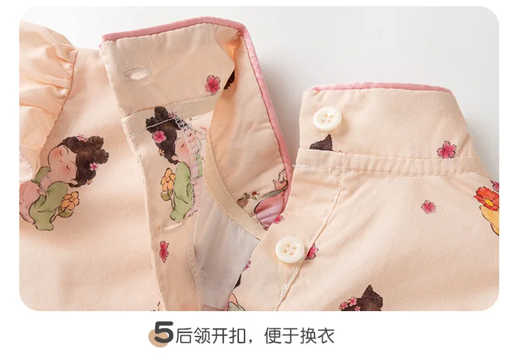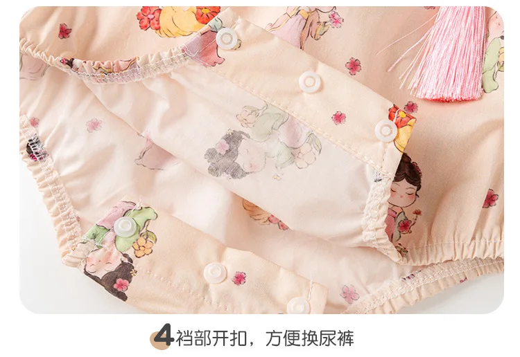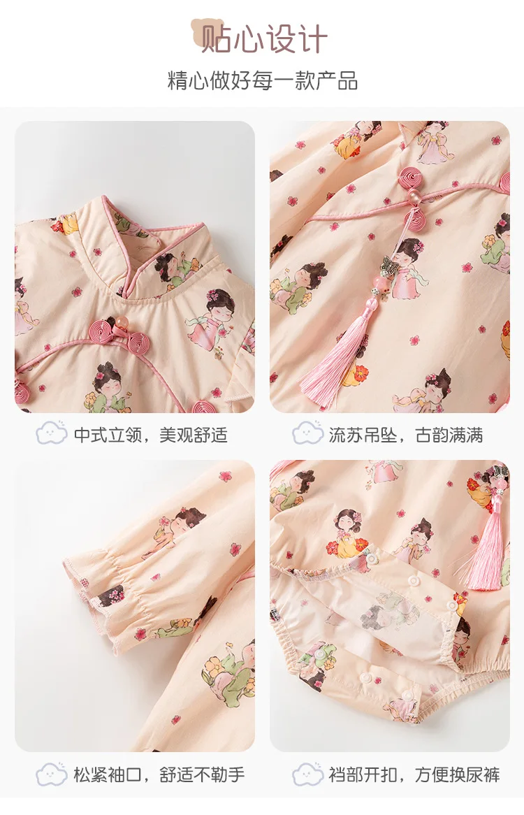 Monos de primavera y otoño para niña, monos de manga larga de algodón con estampado bonito de dibujos animados de estilo chino y artículos de una pieza para bebé recién nacido B021