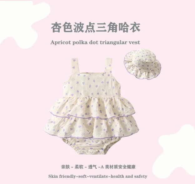 Monos de verano, ropa para niña pequeña, moda coreana, mono de algodón sin mangas con estampado de princesa bonita + sombrero, artículos para recién nacidos B129
