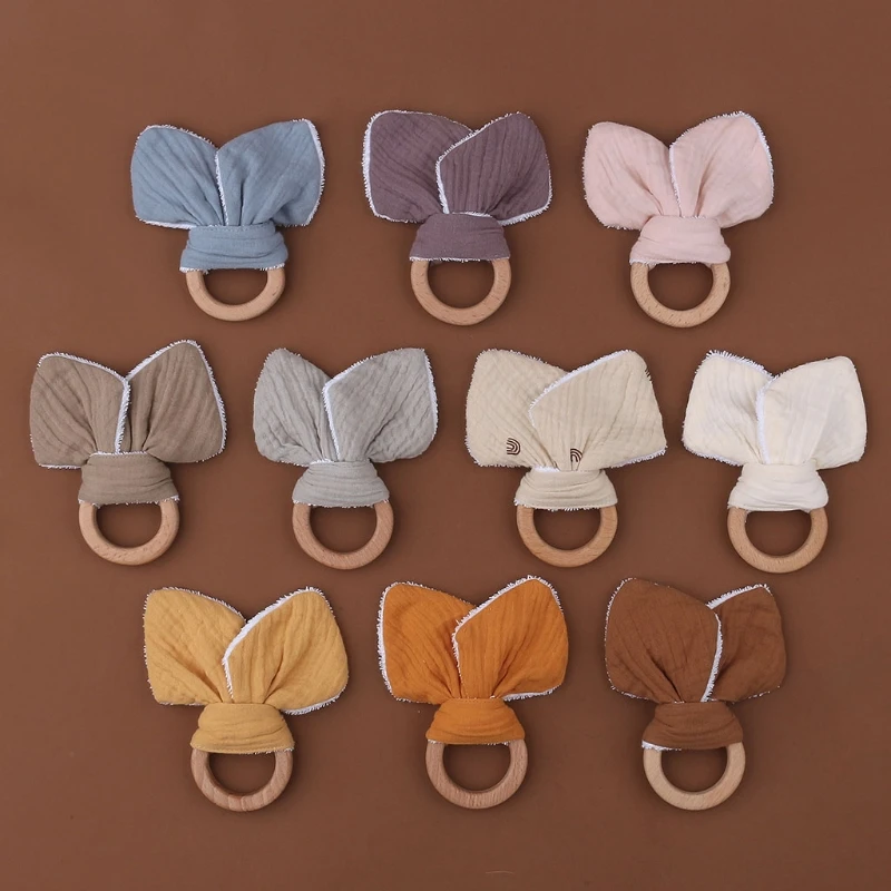 Durable y fácil de limpiar.El cinturón con orejas de conejo se puede quitar, para ayudar al bebé a limpiar la baba, las orejas de algodón orgánico, también se puede usar para decorar.