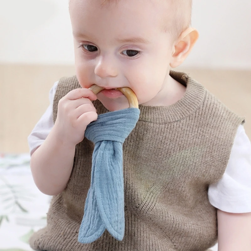 Durable y fácil de limpiar.El cinturón con orejas de conejo se puede quitar, para ayudar al bebé a limpiar la baba, las orejas de algodón orgánico, también se puede usar para decorar.