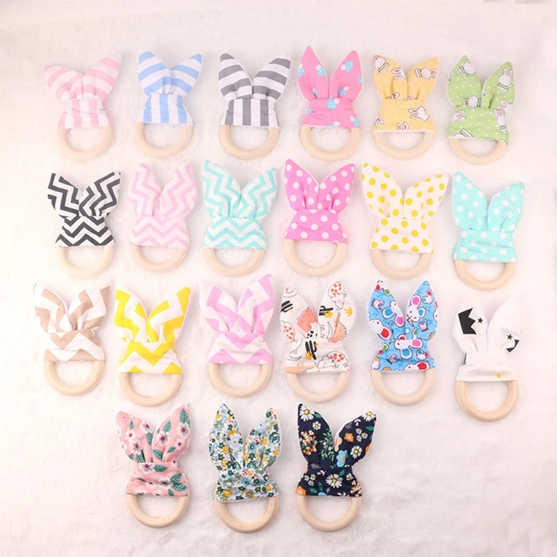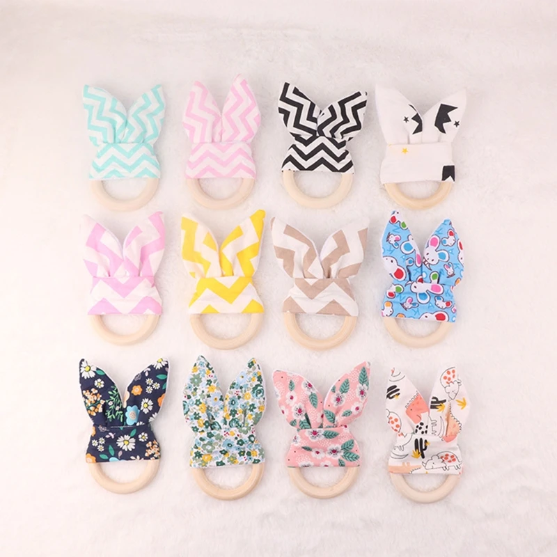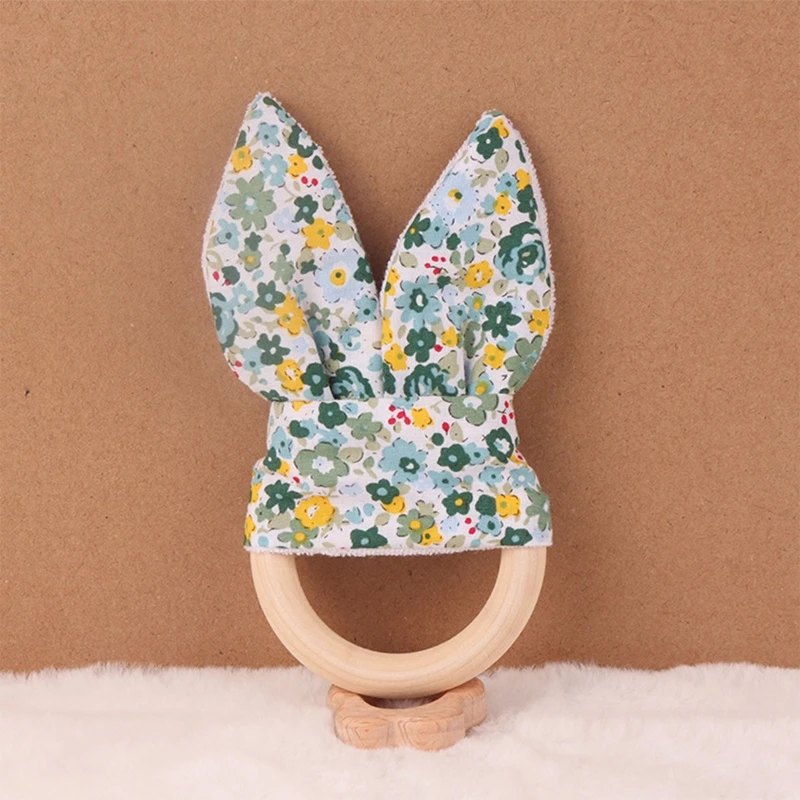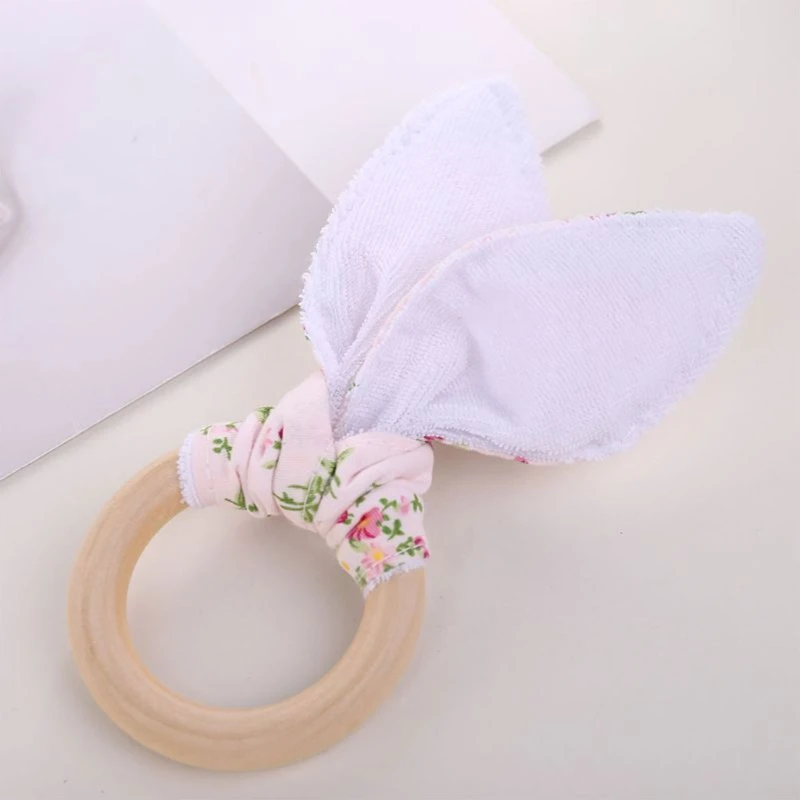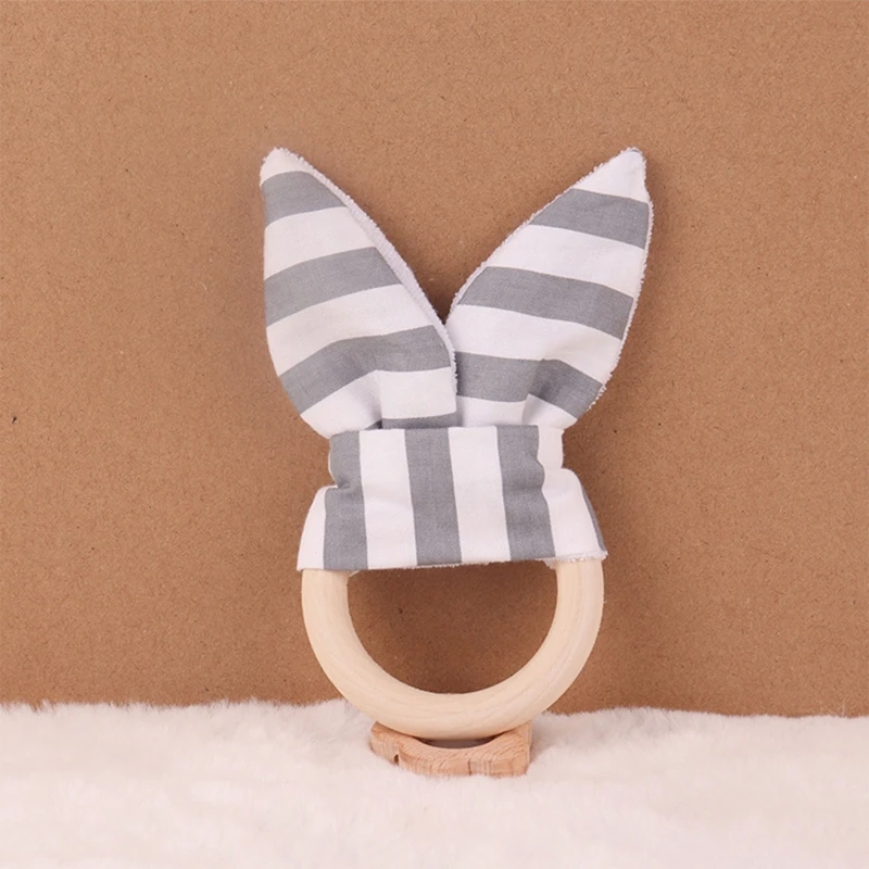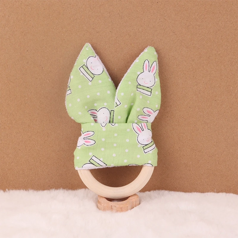 Mordedor de felpa con Orejas de conejo para bebé, anillo de madera libre de BPA, juguete de Teeting Molar de roedores para recién nacido, sonajero sensorial para gimnasio, 1 ud.