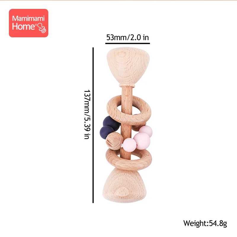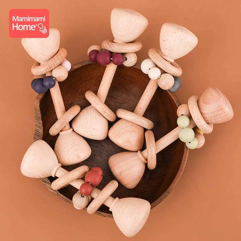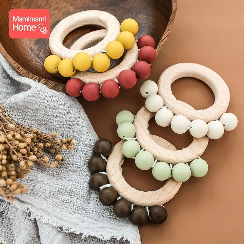 Comprar Mordedor de madera para bebé, sonajero musical sin BPA, anillo de gimnasio de madera, cuentas de silicona para roedores, juguetes educativos Montessori para niños, 1 unidad