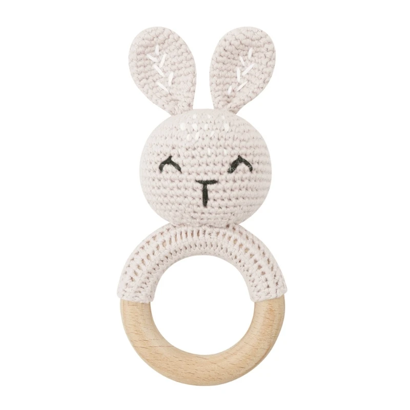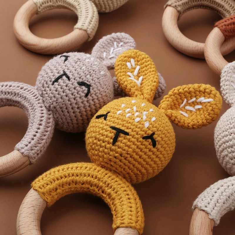 Mordedor de madera de conejito para bebé, sonajero de jirafa de ganchillo, juguete sin BPA, sonajero para roedores de madera, gimnasio móvil para bebé, logotipo personalizado educativo