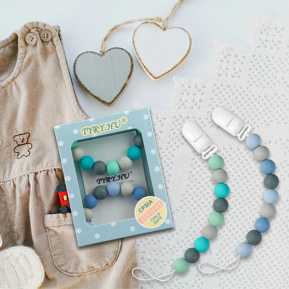 Comprar Mordedor de silicona para bebé, cadena de soporte para chupete hecha a mano, 2 piezas