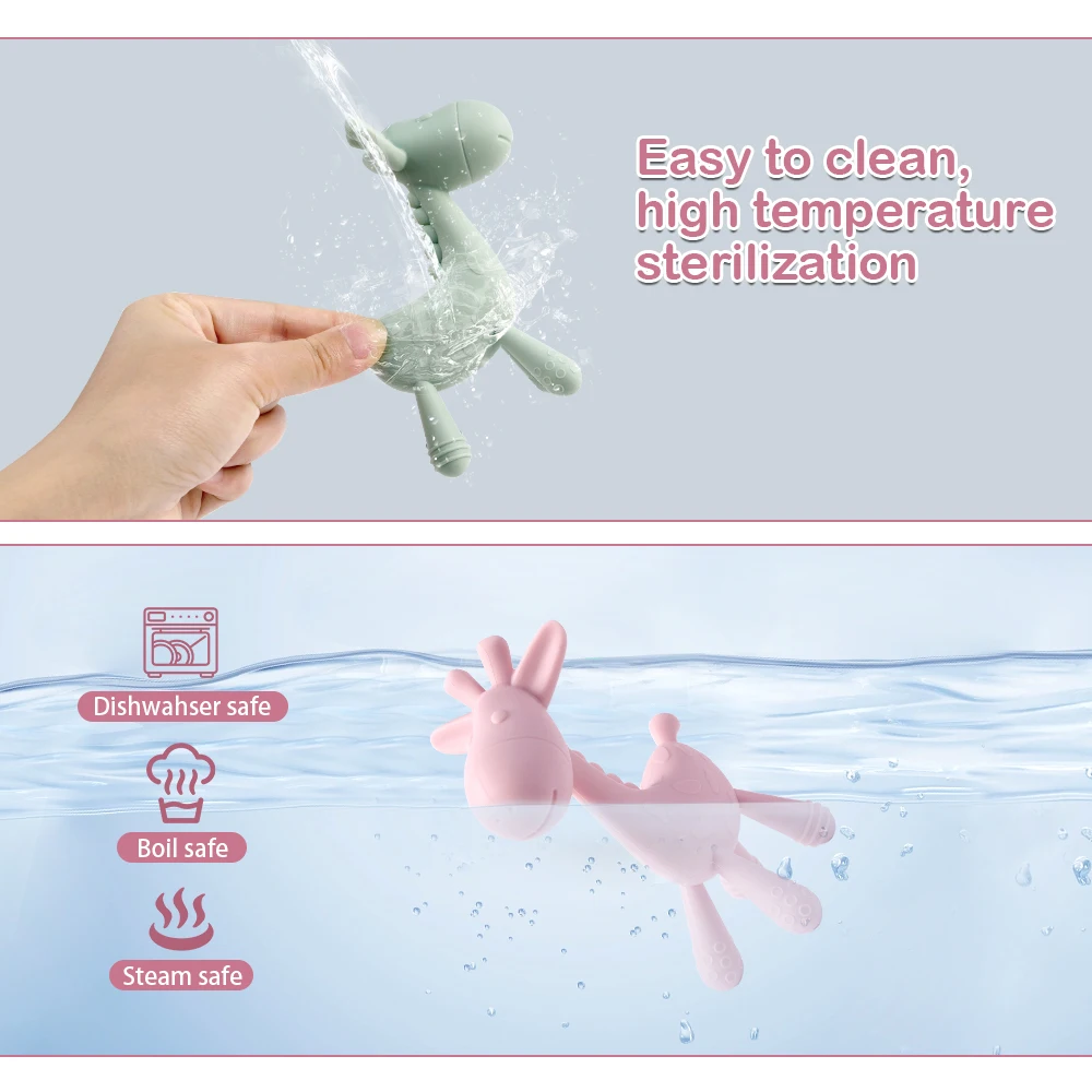 Comprar Mordedor de silicona para bebé de dibujos animados, juguetes de entrenamiento de fuerza de agarre, juguete para masticar para bebé, jirafa, salud para niños, molar, accesorios para masticar, juguete