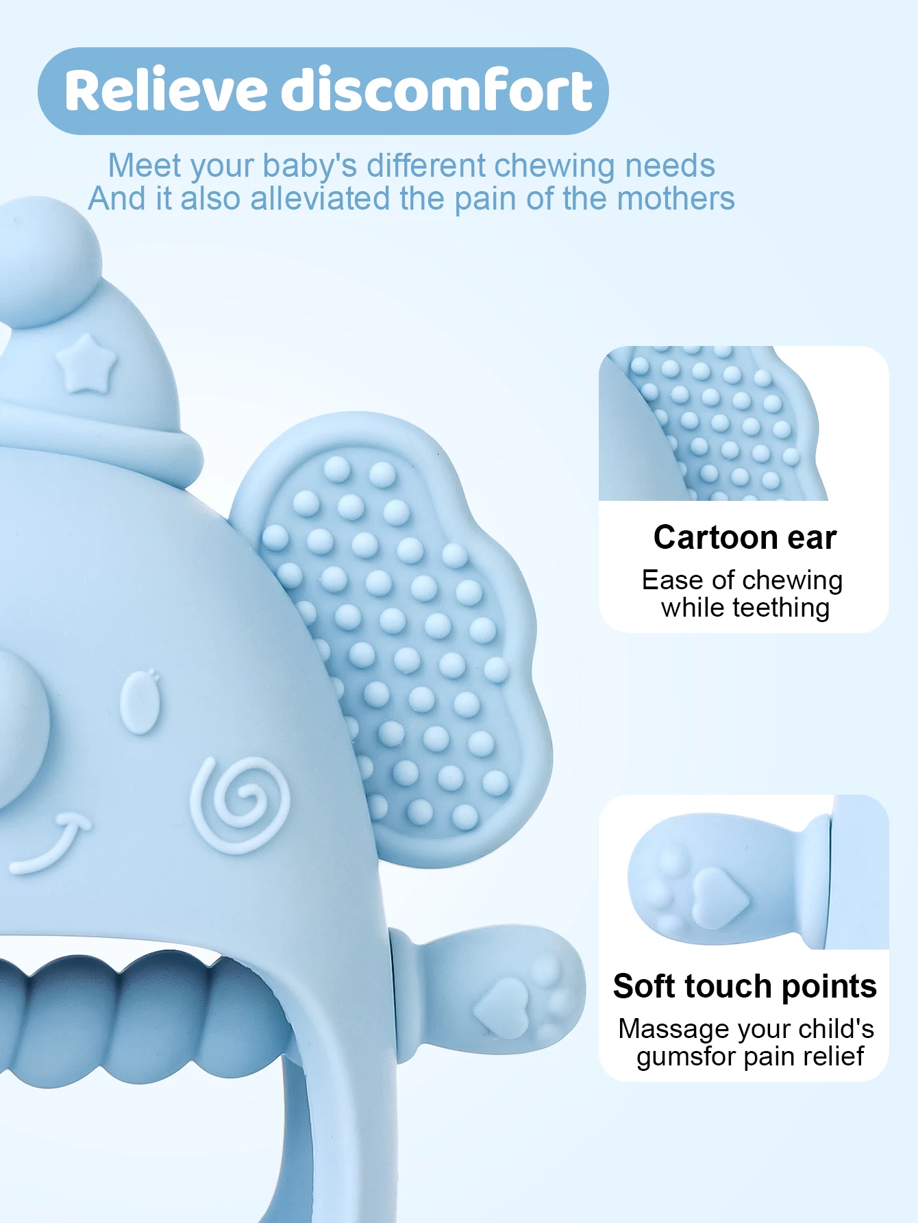 Mordedor de silicona para bebé, juguetes con forma de ellephan de dibujos animados, manopla mordedor para chupar, sin BPA, textura suave, 1 ud.