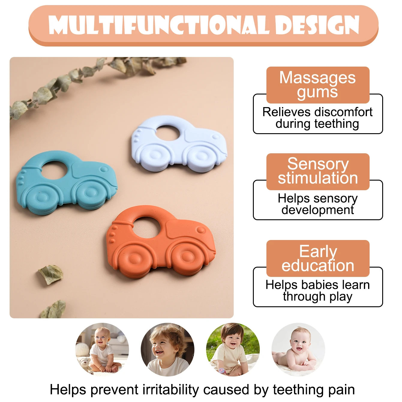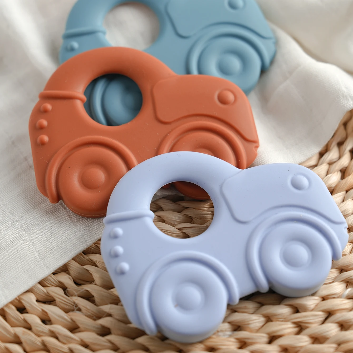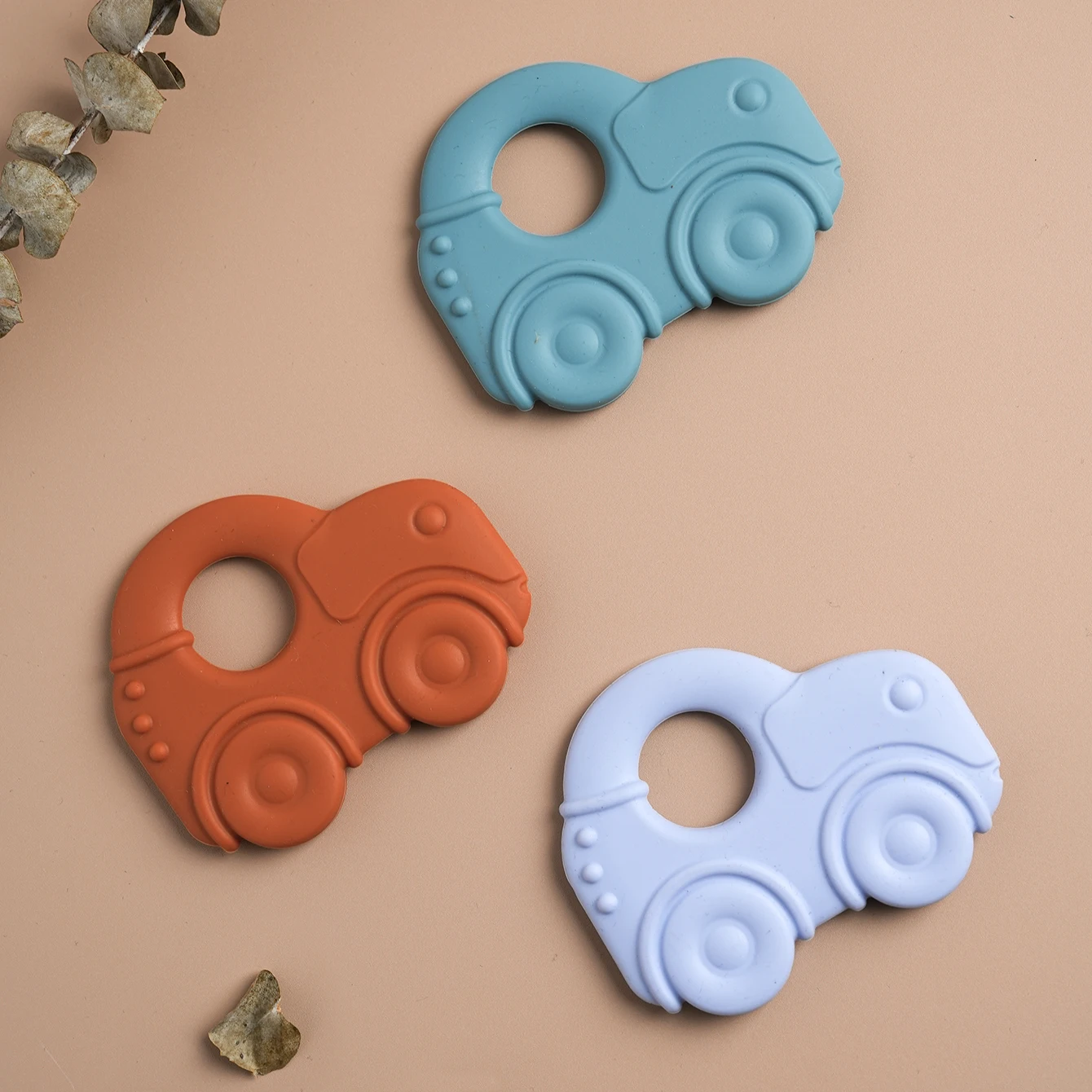 Color niños 1 Uds coche de silicona mordedor sin BPA dibujos animados bebé juguete masticable recién nacido dentición relajante juguete de alivio sensorial