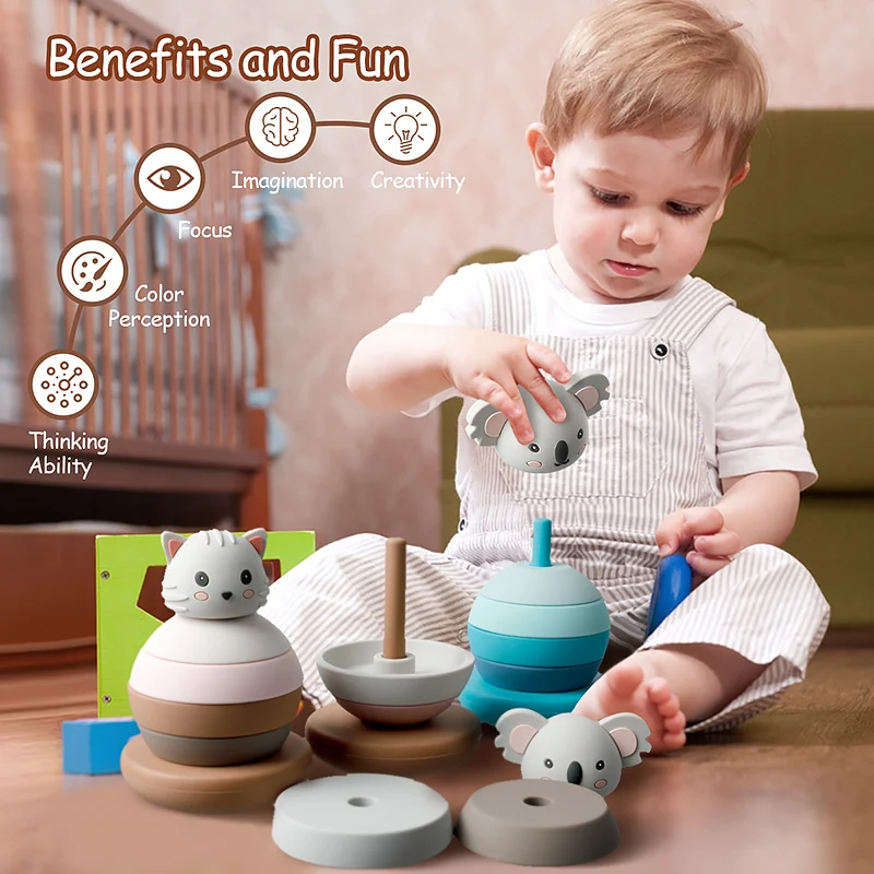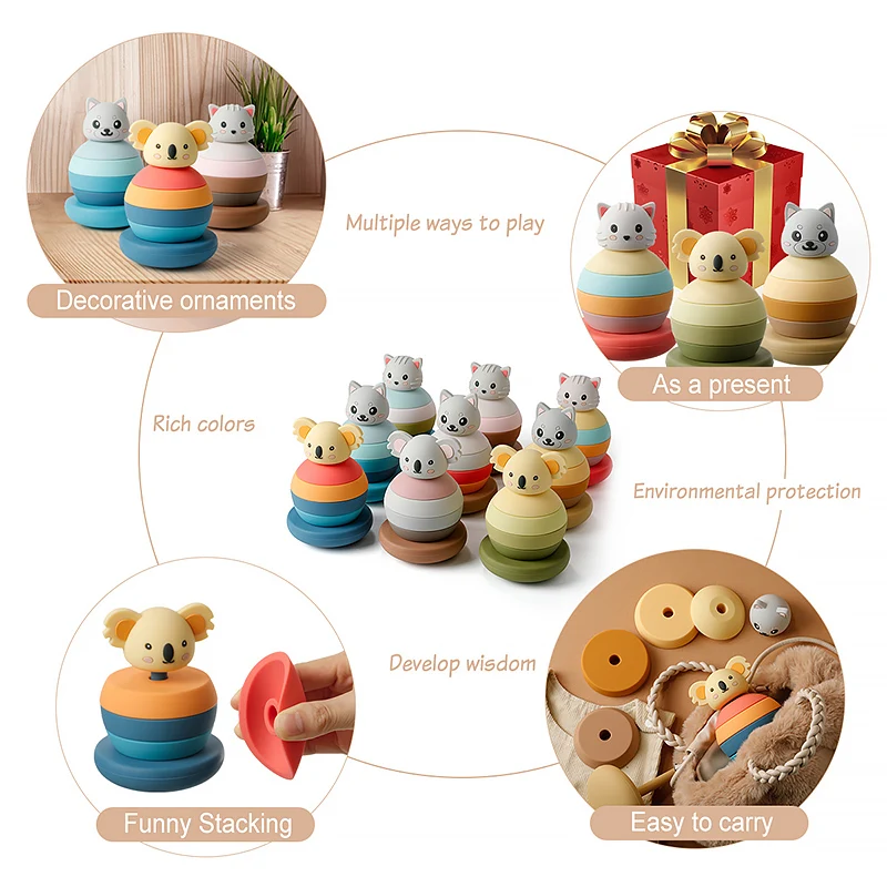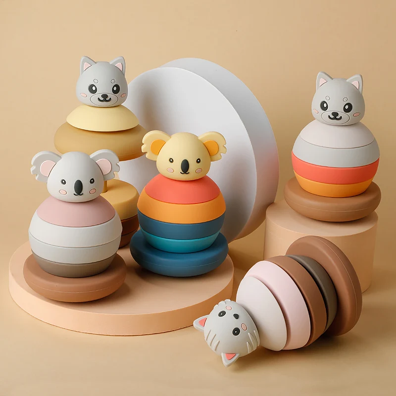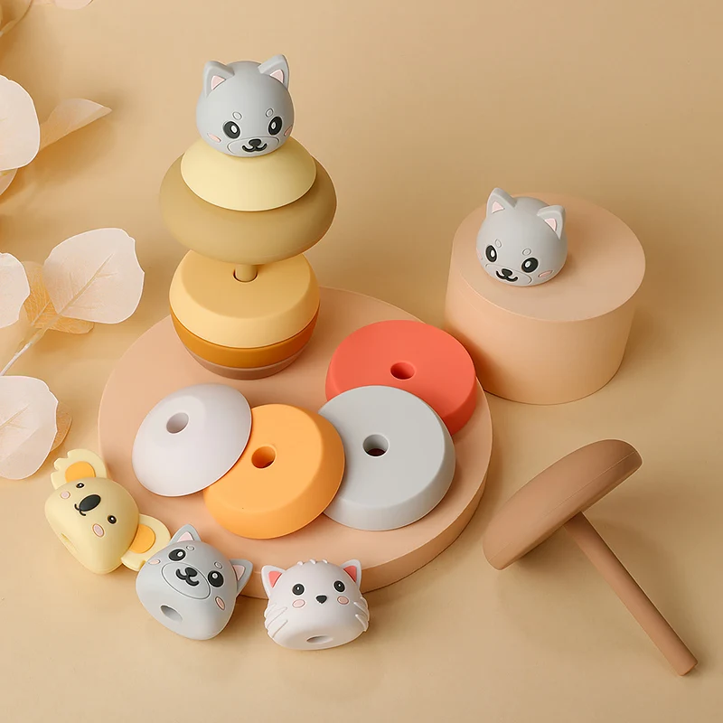 1et mordedor de silicona forma de vaso de bebé bloques de apilamiento juguete