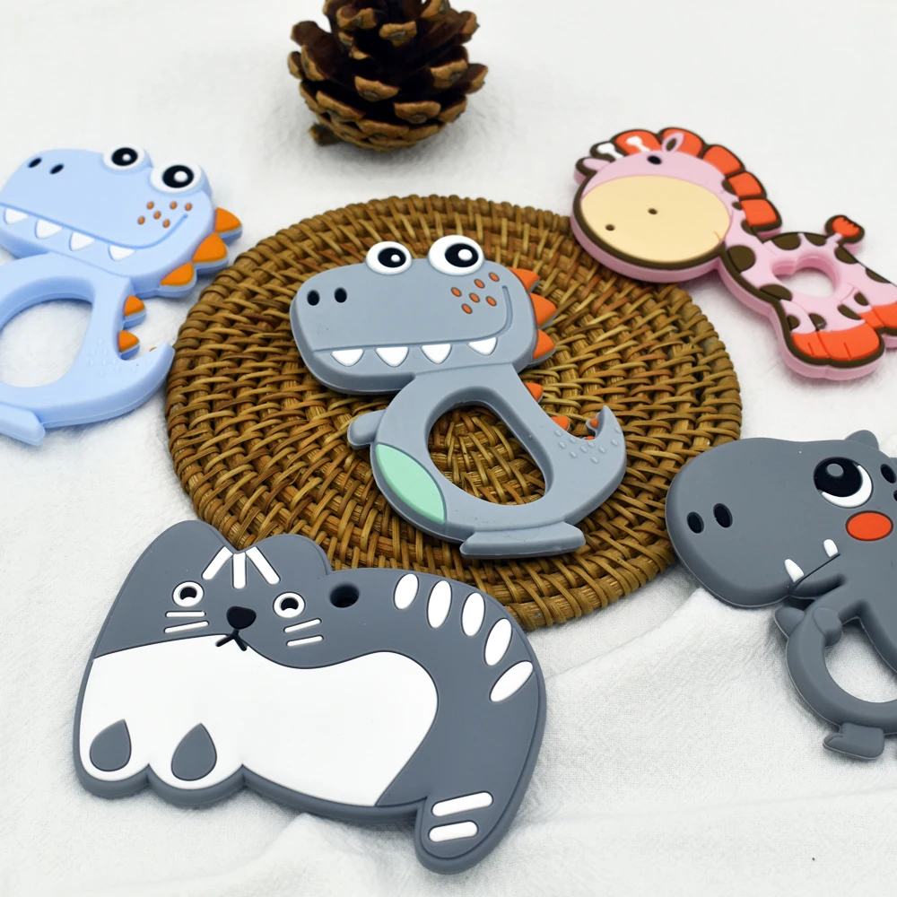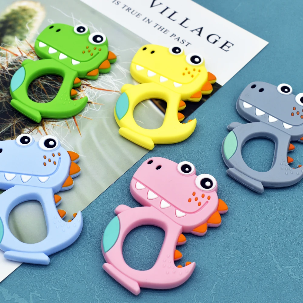 Comprar Mordedor de silicona de grado alimenticio para bebé recién nacido, mordedor con forma de dinosaurio, Animal de dibujos animados, accesorios de enfermera para roedores