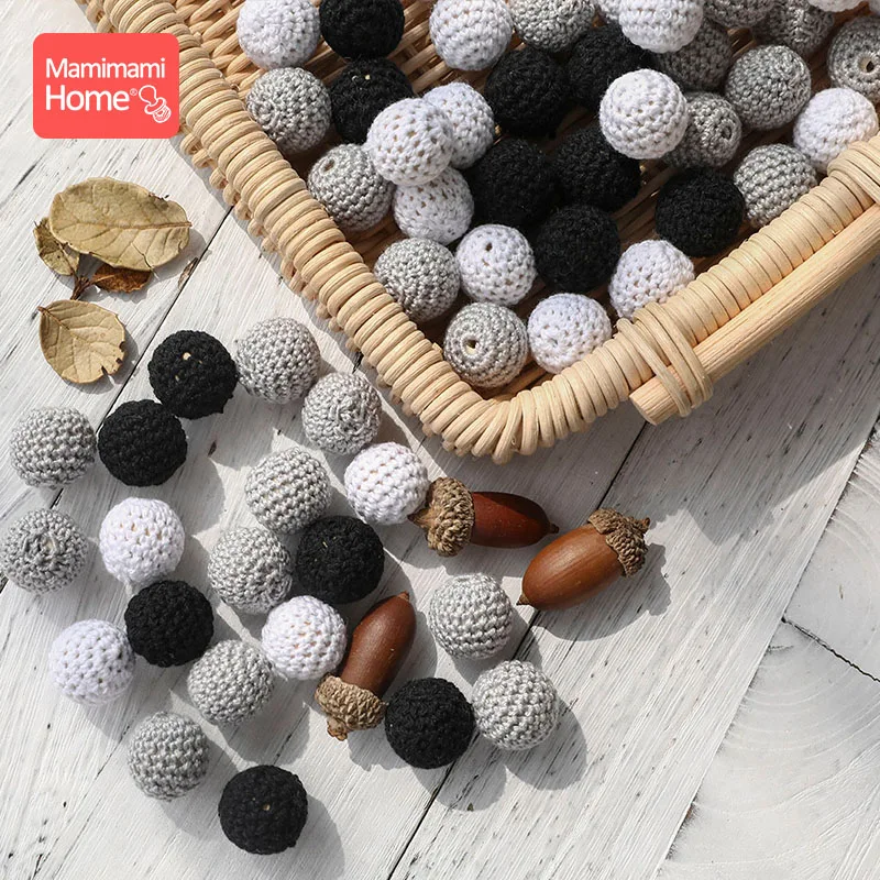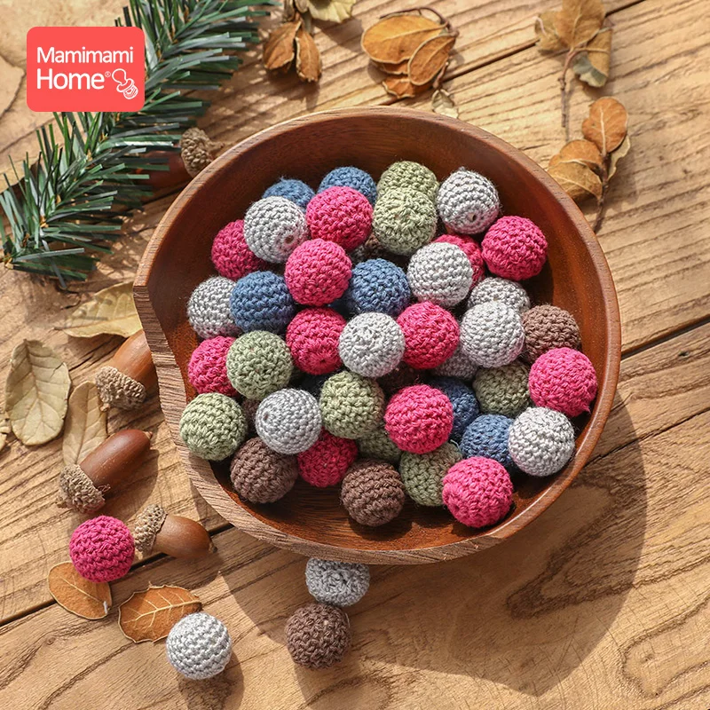 10 Uds. Mordedores de madera para bebé, cuentas de ganchillo de 20mm, sin BPA, cadena de chupete DIY, collar, accesorios y regalos para enfermeras, productos para bebé