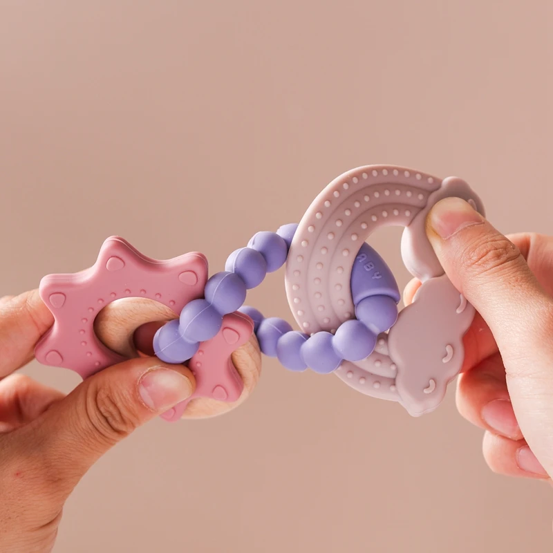 Mordedores de silicona para bebés, sonajero, juguetes para masticar recién nacidos, mordedores de grado alimenticio, cama de entrenamiento, juguete para bebés, accesorios de juguete calmantes de silicona, regalo