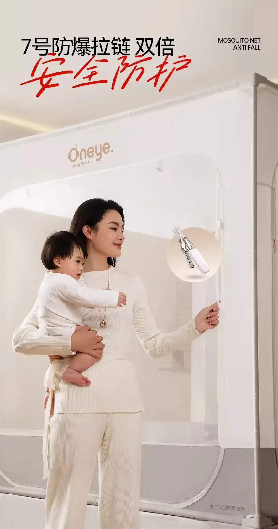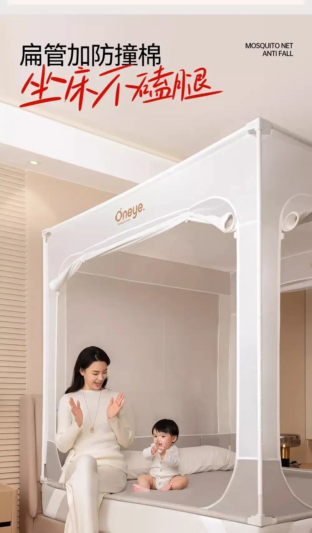 Mosquitera para bebé con protector de seguridad, red para cama infantil mejorada 2025, 360 ° Diseño antimosquitos y anticaída, estructura de acero reforzado