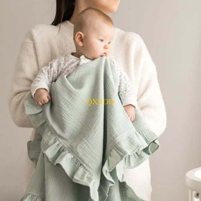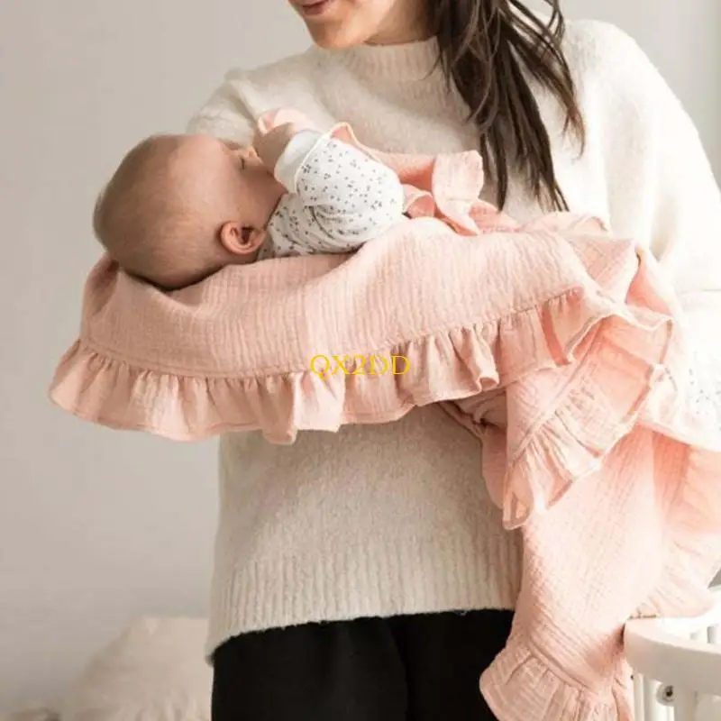 Agente suave y no fluorescente: la manta para bebé utiliza material ecológico, elegante diseño de volantes, agente no fluorescente y capa de 2 capas gruesas, agradable para la piel y adecuada para recién nacidos y bebés.