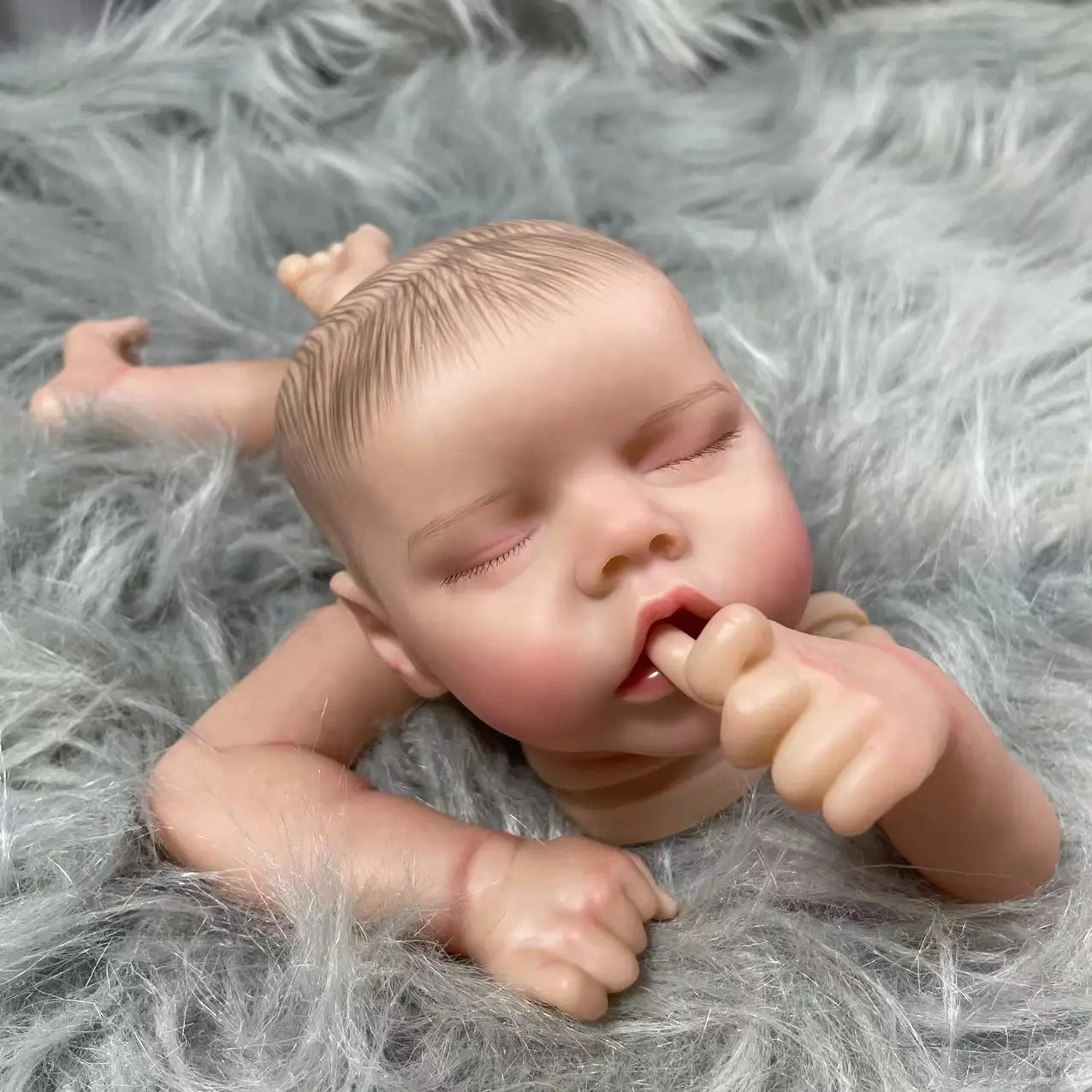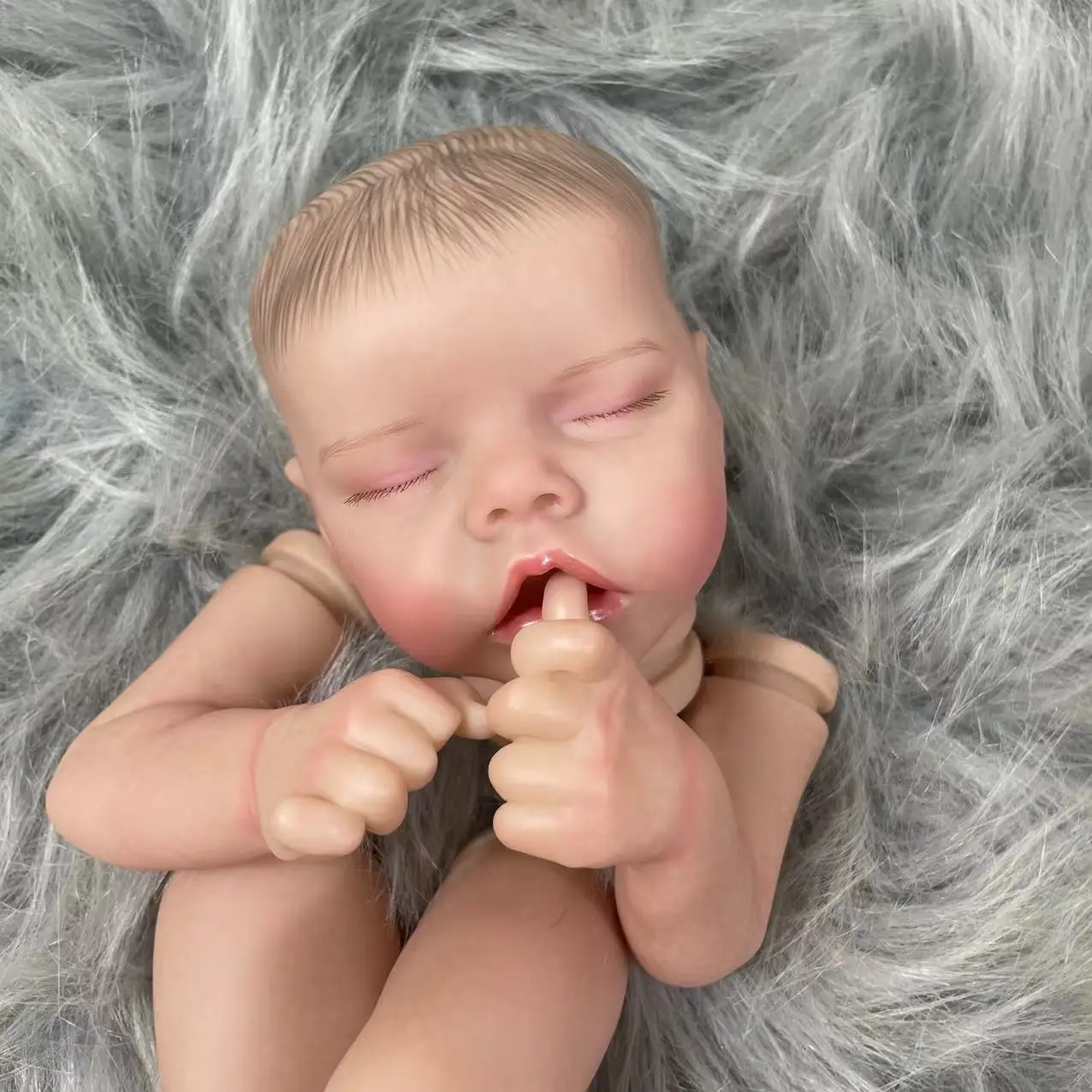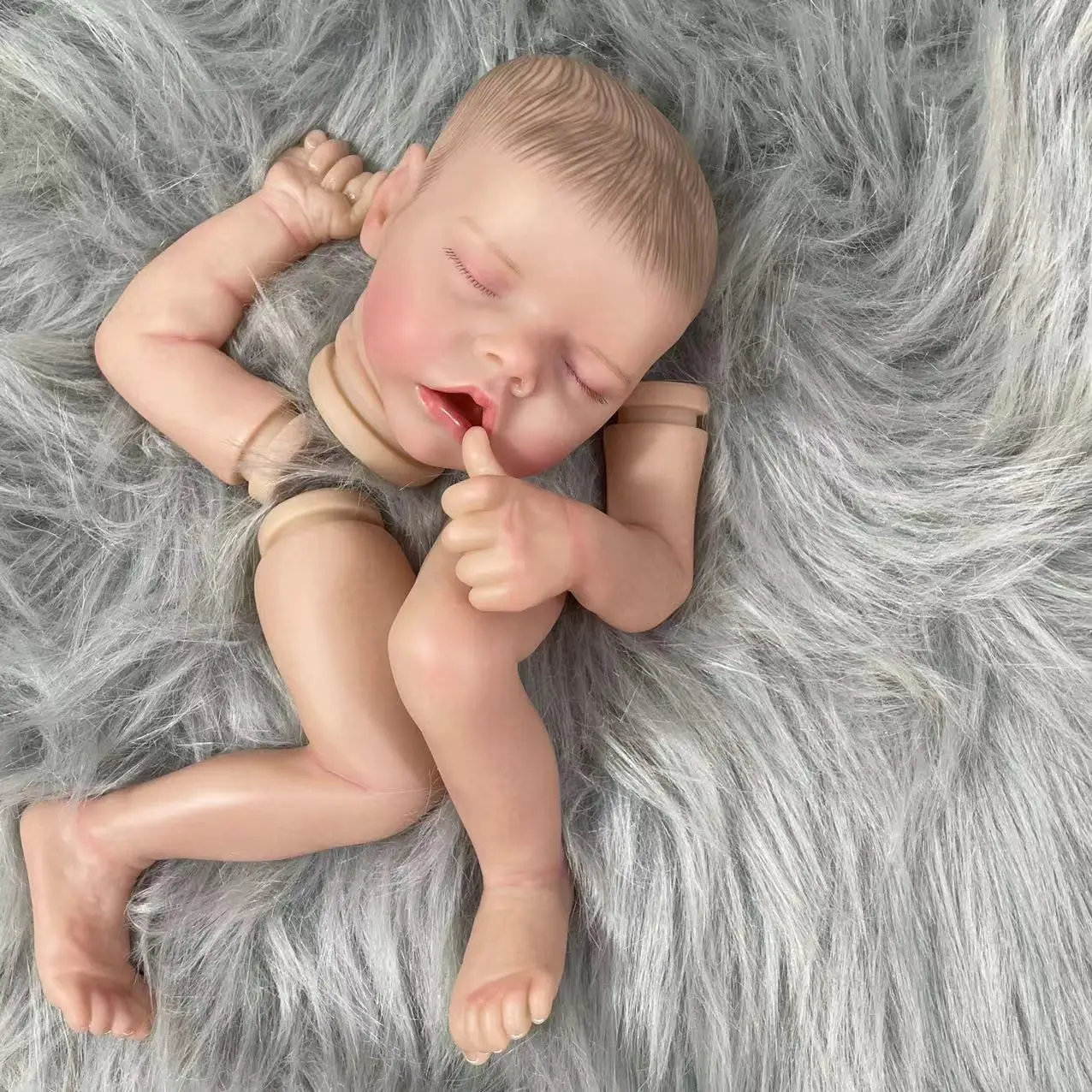 Comprar MRB-piezas de muñeca Reborn de vinilo ya pintadas, 17 pulgadas, doble un bebé durmiente, pintura 3D, piel, venas visibles, cuerpo de tela suave incluido