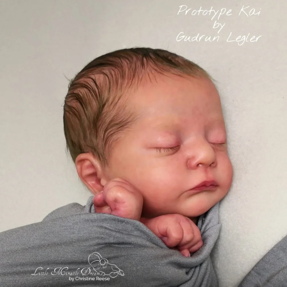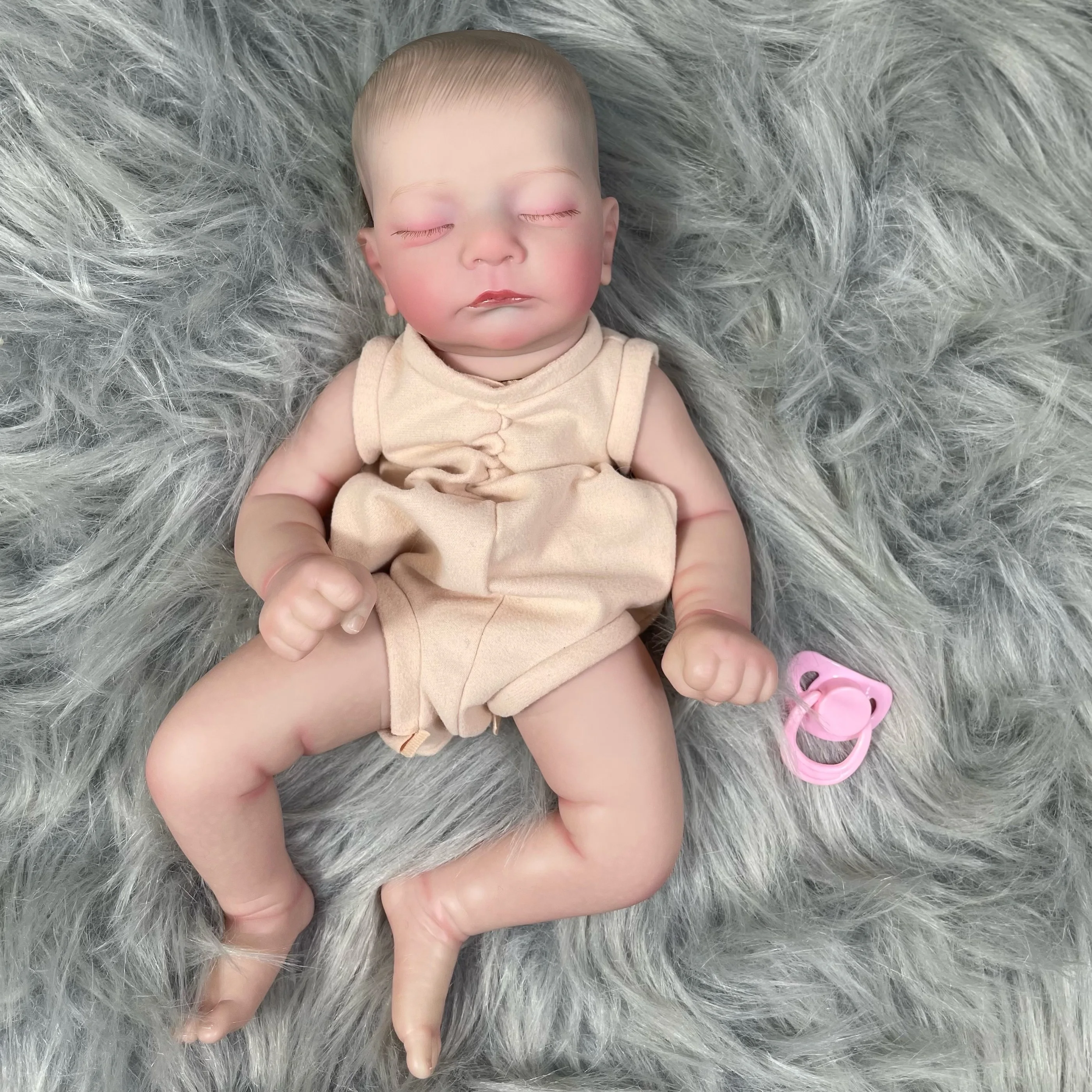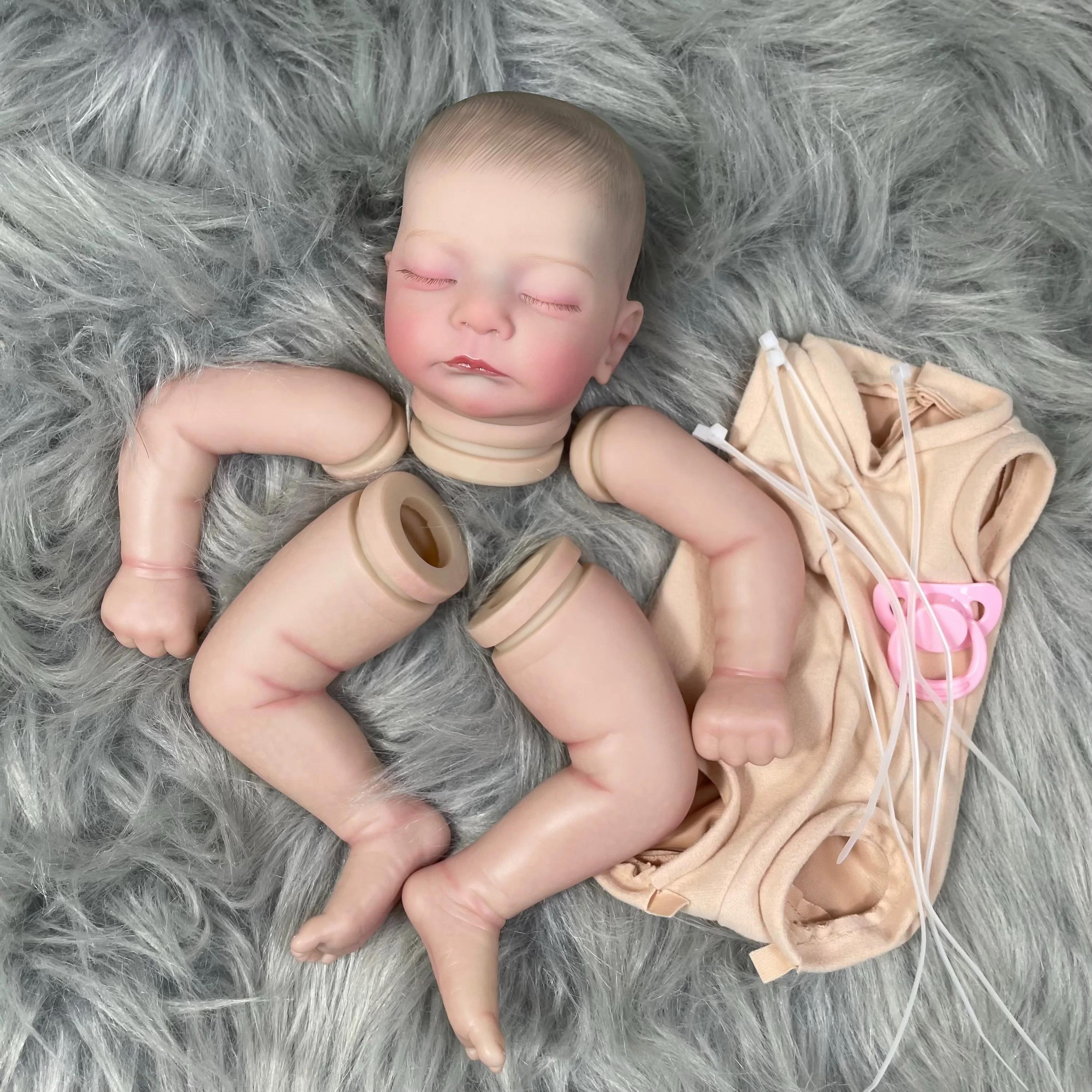 Comprar MRB-piezas de muñeca Reborn de vinilo ya pintadas, 19 pulgadas, KAI, bebé durmiendo, pintura 3D, piel, venas visibles, cuerpo de tela suave incluido