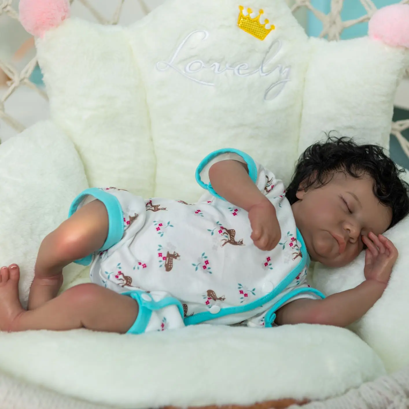48CM Bebe Doll Reborn Baby Hecho a mano Levi Black Skin African American Baby Soft Body Sleeping Bebe con biberón y chupete