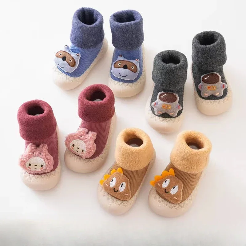 Muñeca de dibujos animados tridimensional, más terciopelo y zapatos gruesos para interiores, antideslizantes, fondo suave para interiores, niños pequeños, nuevo