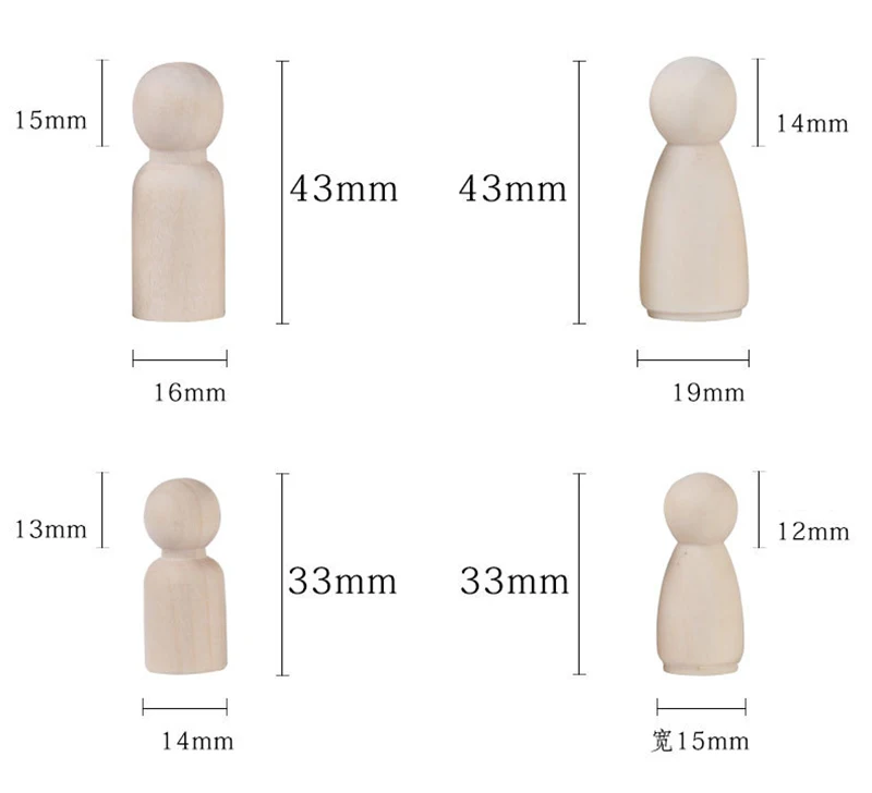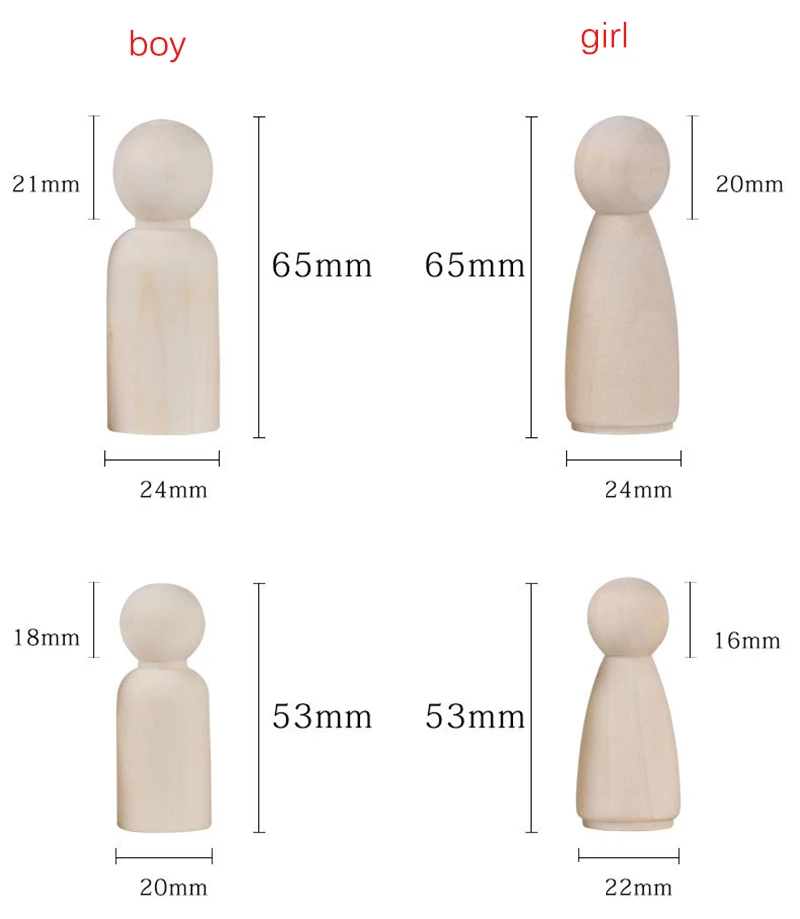 Comprar Muñeca de madera de 65mm-35mm para niño y niña, juguete sin terminar de madera, hecho a mano, producto para bebé, regalo de Navidad, 10 unidades