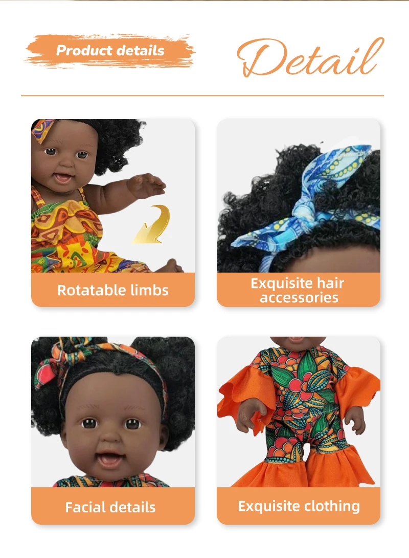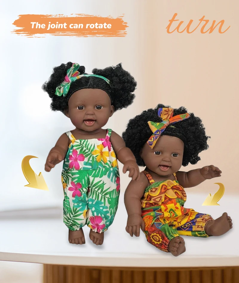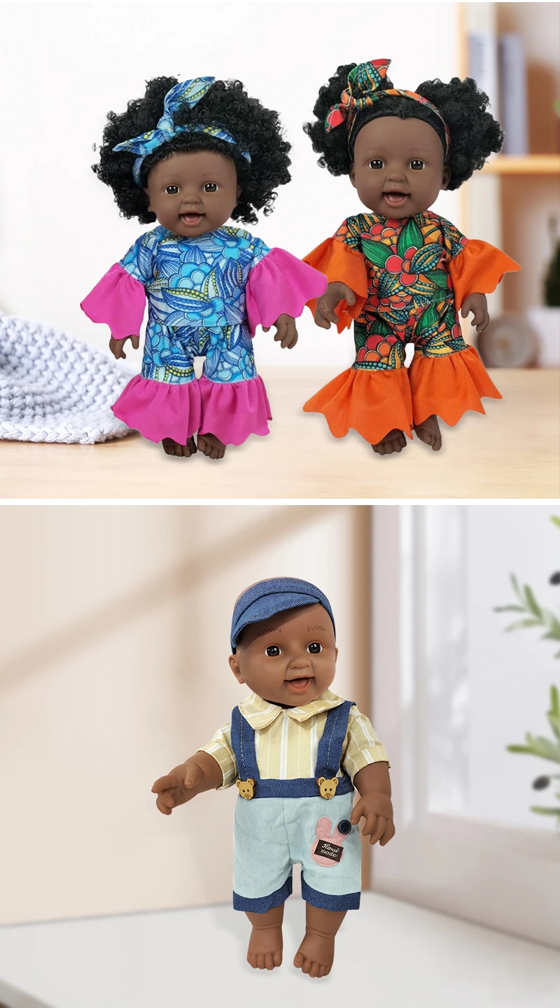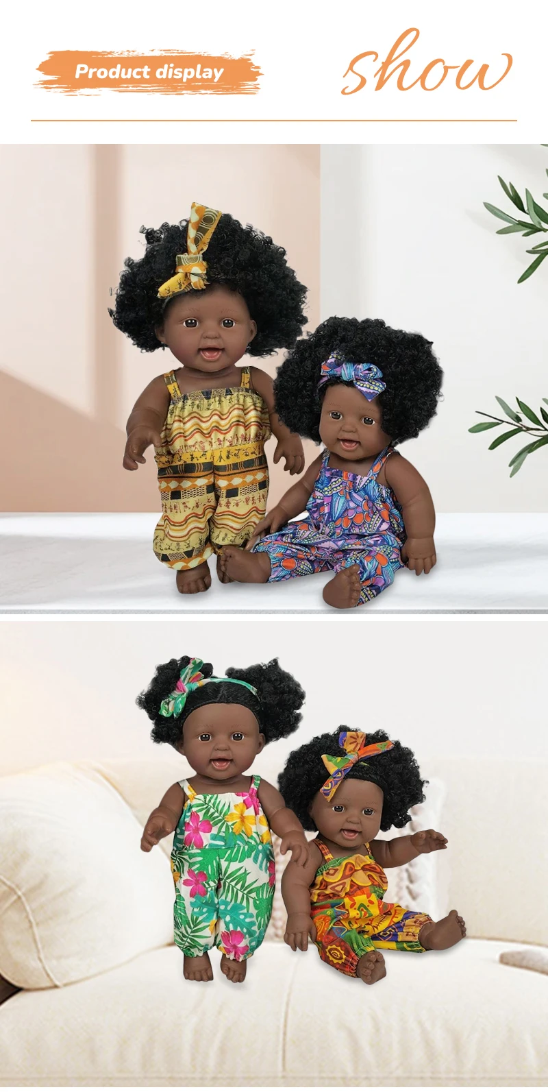 Comprar Muñeca negra africana americana de 12 pulgadas con ropa, cuerpo completo de vinilo, muñecas de pelo rizado, muñeca bebé negra realista, regalos de cumpleaños para niñas