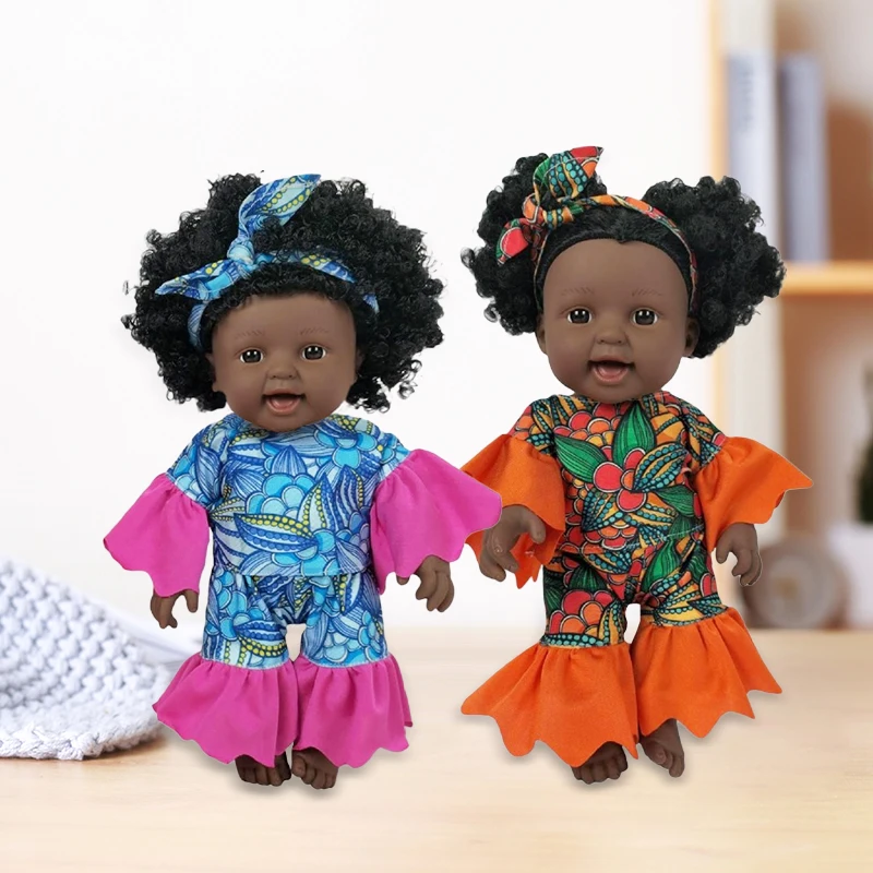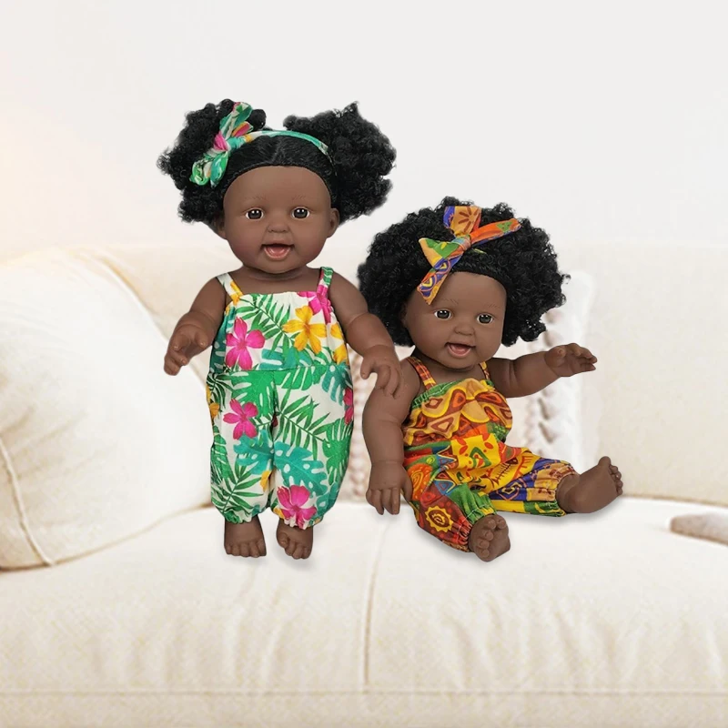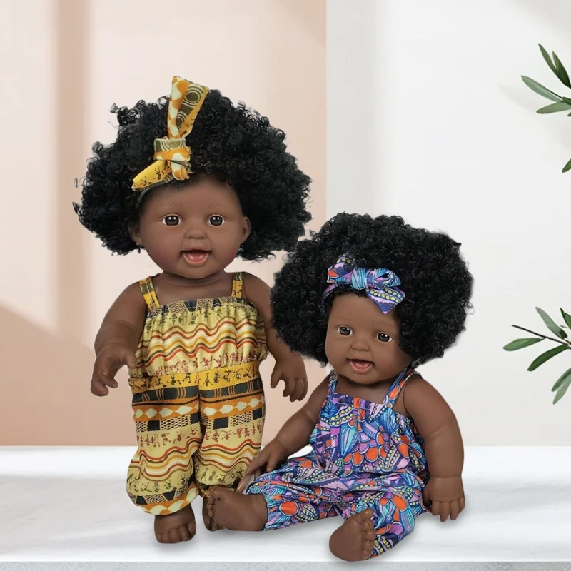 Comprar Muñeca negra africana americana de 12 pulgadas con ropa, cuerpo completo de vinilo, muñecas de pelo rizado, muñeca bebé negra realista, regalos de cumpleaños para niñas