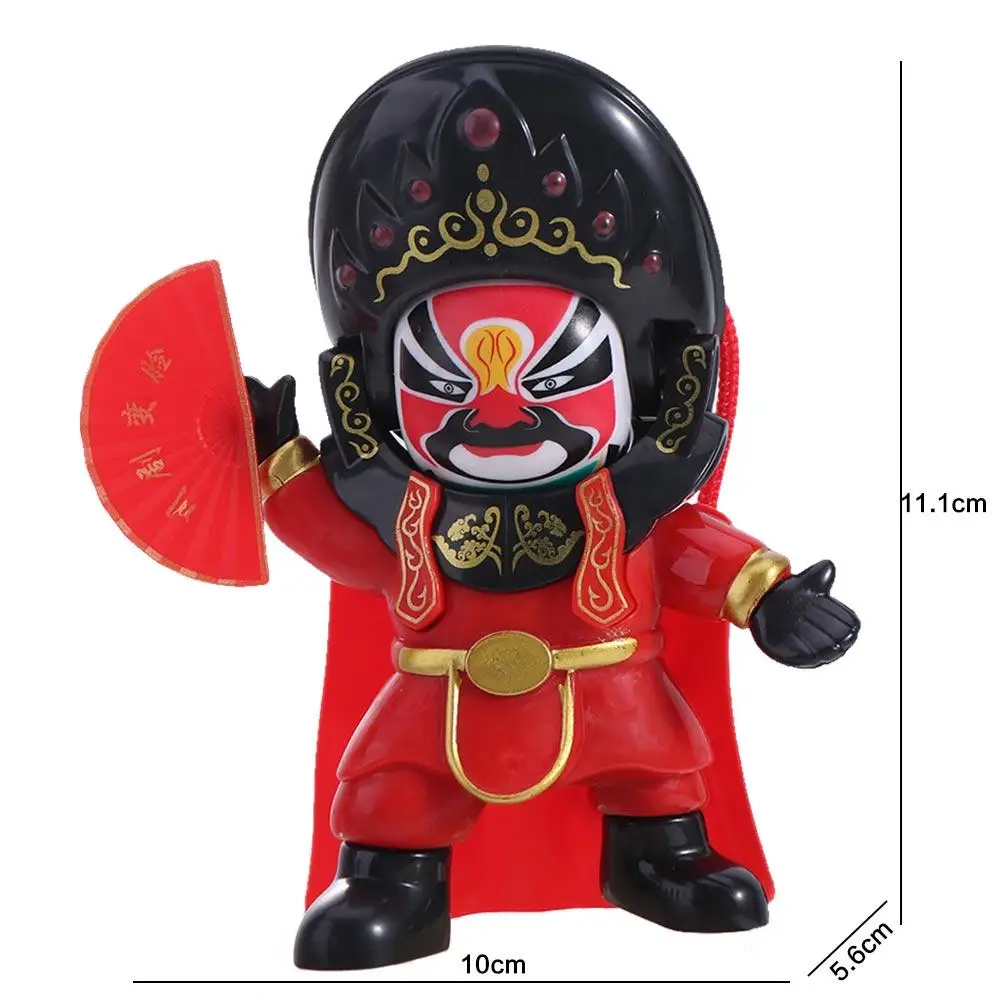 Nombre del artículo: Juguete que cambia la cara Material: Plástico Características: 4 maquillajes faciales, diseño que cambia la cara Detalles del tamaño: 11,1*10cm (4,37*3,94 pulgadas) Edad recomendada: 4-14 años Embalaje: 1 pieza de muñeca que cambia de cara (el color del abanico es aleatorio) Descripción: Presentamos nuestro juguete que cambia de cara, una muñeca única y cautivadora, arte y folclore chino tradicional. Fabricada con material plástico de alta calidad, esta muñeca es suave y sin rebabas, lo que garantiza una experiencia segura y agradable para todas las edades. La muñeca que cambia la cara de la ópera cuenta con un mecanismo fascinante que le permite cambiar entre 4 caras diferentes con solo presionar un botón en Su. Esta exquisita muñeca sirve como un regalo excepcional, mostrando un tema inusual que seguramente cautivará a cualquiera que lo reciba.