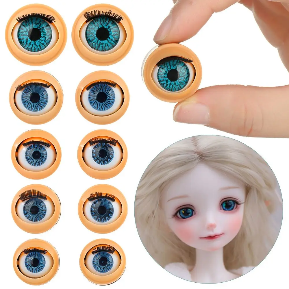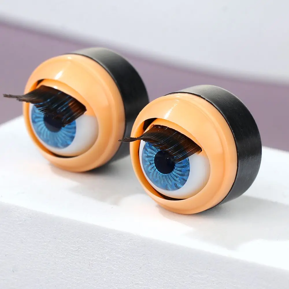 1Pair Doll Rolling Eyeballs with Eyelashes Doll Activity Eyes Eyechips with Eye Cover DIY Doll Simulation Eyeball Accessories
