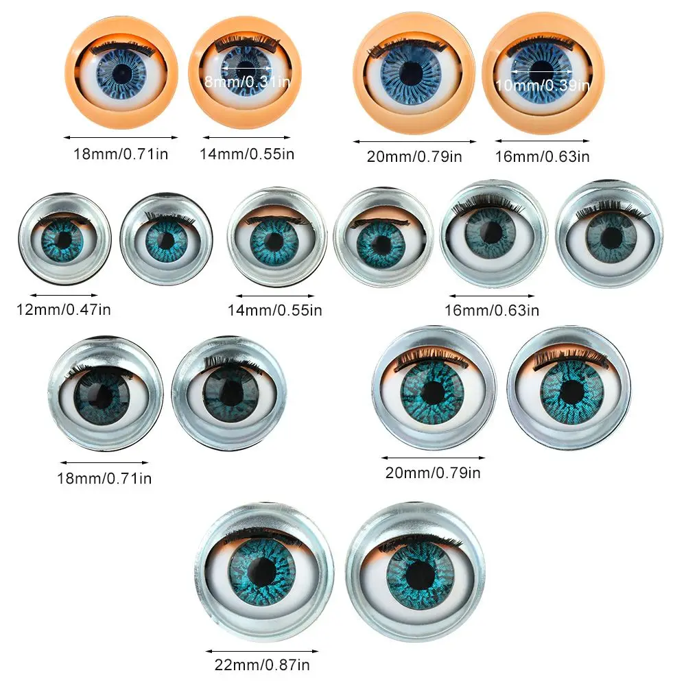 Style 10:Total Diameter 18mm, Eyeball Diameter 14mm.Pupil 8mm