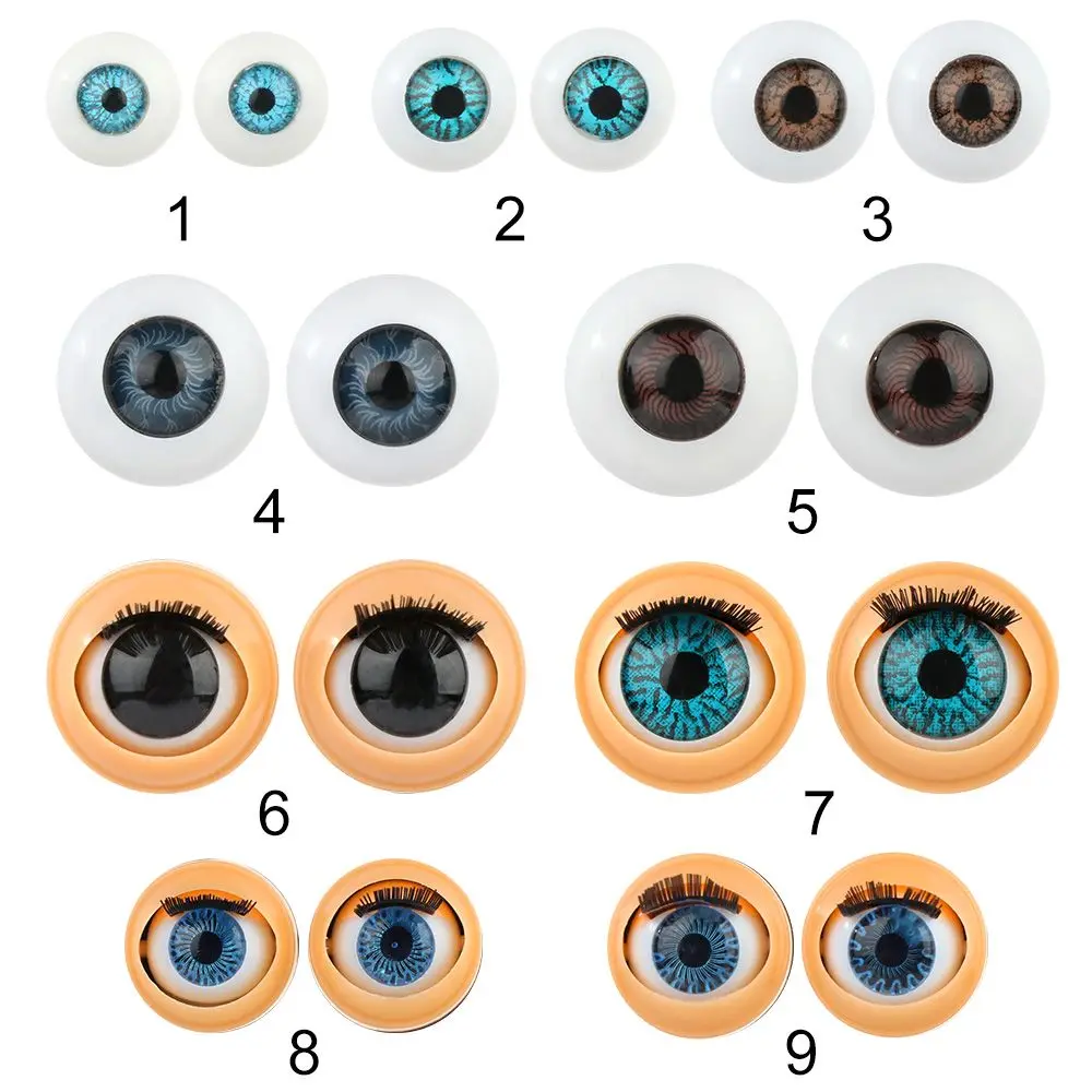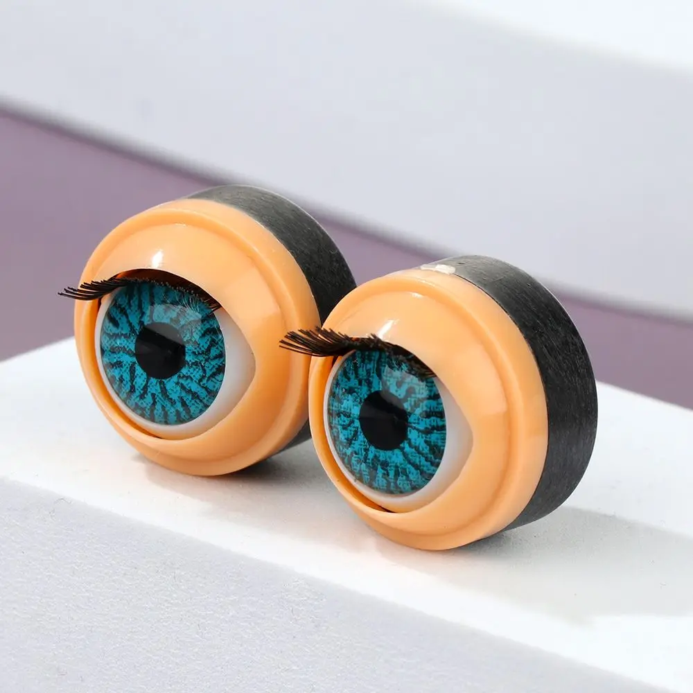 1Pair Doll Rolling Eyeballs with Eyelashes Doll Activity Eyes Eyechips with Eye Cover DIY Doll Simulation Eyeball Accessories