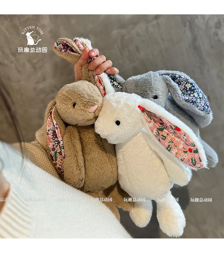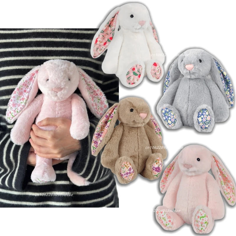 Muñeco de conejo Bonnie Floral encantador de 30cm, conejo de peluche rosa, blanco, marrón y gris, peluches de animales, muñeca para dormir encantadora, regalo de cumpleaños
