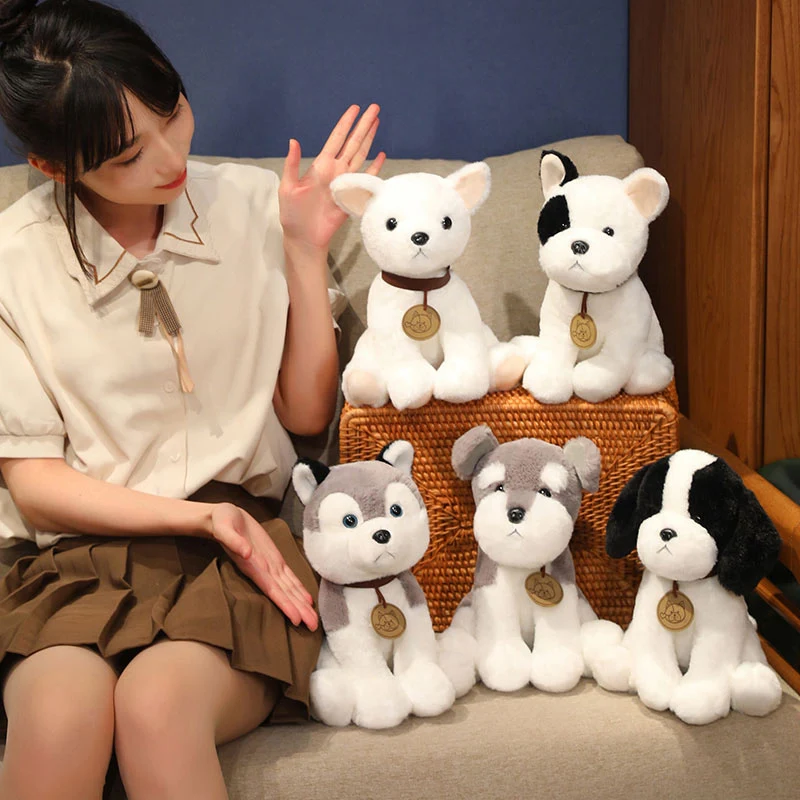 Comprar Muñeco de peluche de perro cachorro realista, juguete de simulación de Bulldog, Chihuahua, perro pastor, Foxhound, Schnauzer, Husky, 25cm