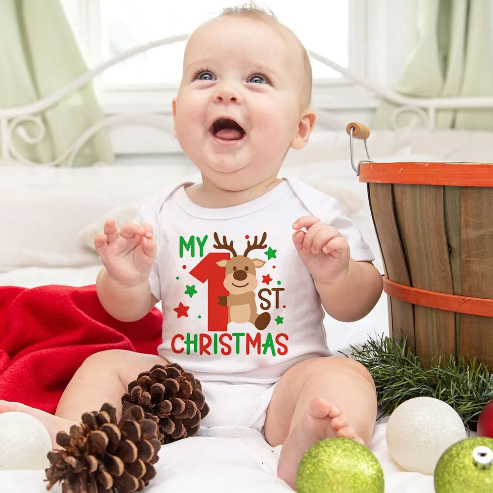 Comprar My 1st Christmas mono de manga corta para bebé recién nacido, traje con estampado de ciervo y Papá Noel, ropa de bautismo infantil, regalos de navidad