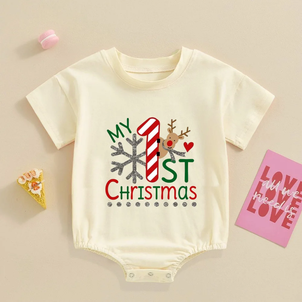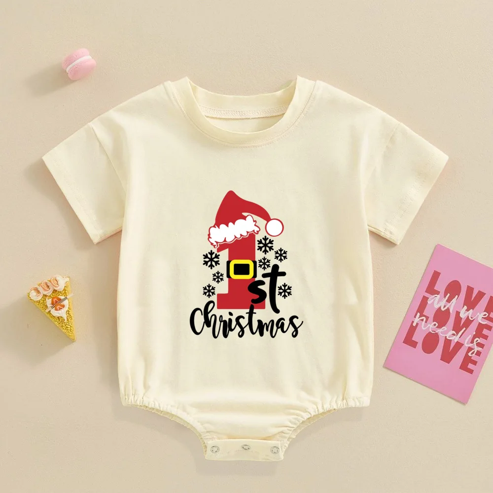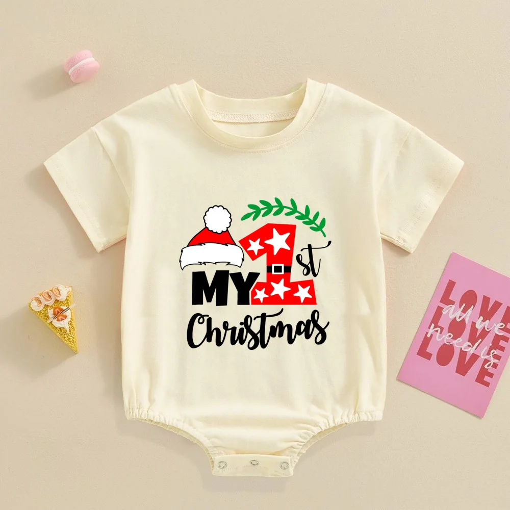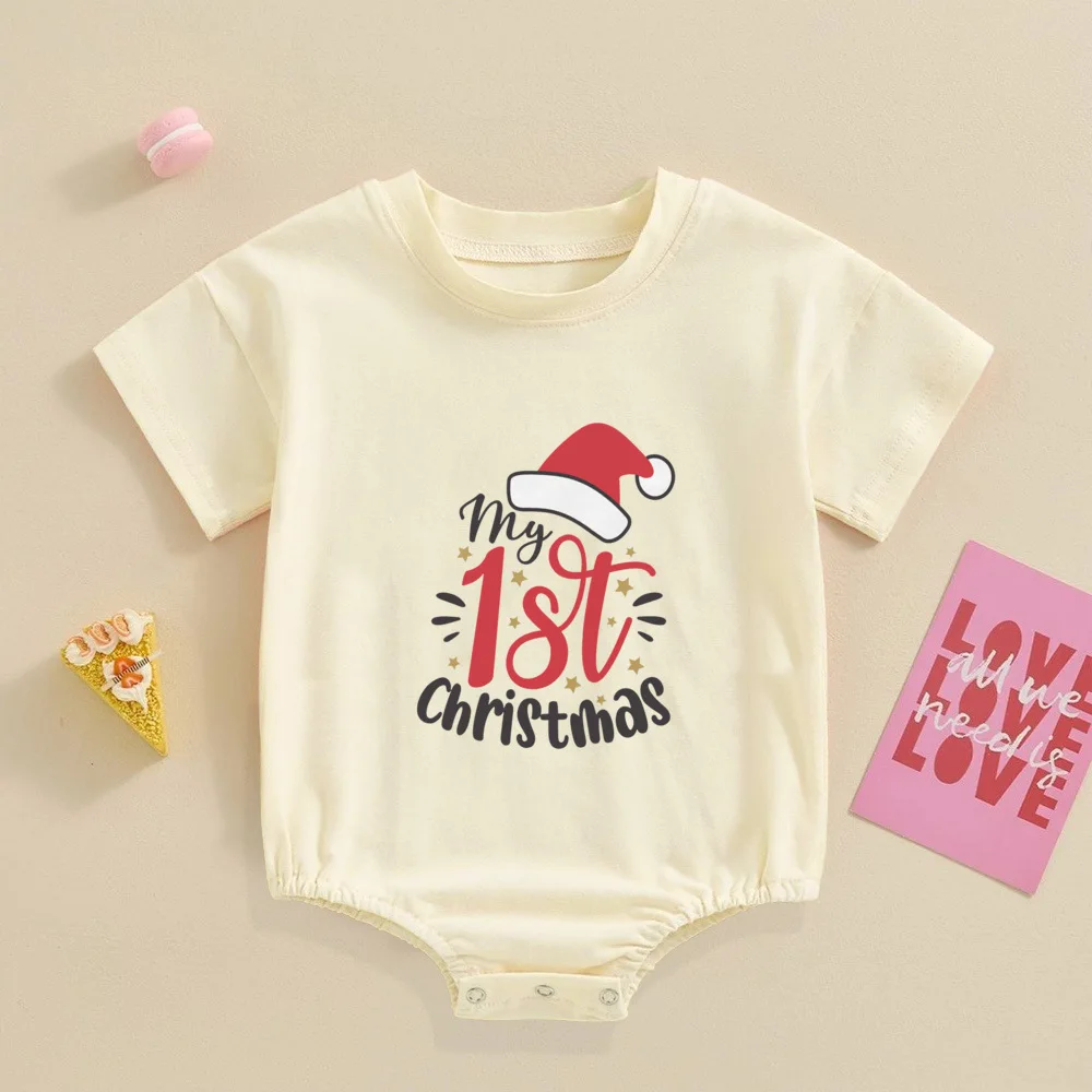 My 1st Christmas Printed Baby Bubble Romper Recién nacido Body de manga corta Traje de bautismo grande para niños pequeños Ropa de fiesta de Navidad